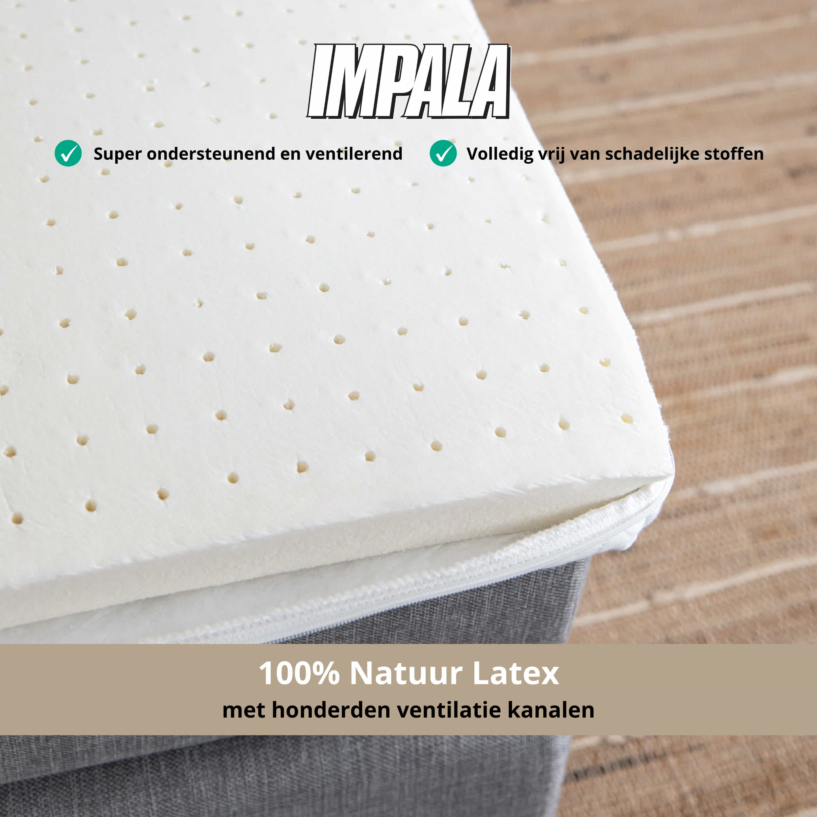 Impala Toppers zijn enkel gemaakt van écht zuiver natuur-Latex. Zuiver natuur Latex is een enorm edel en luxe grondstof.