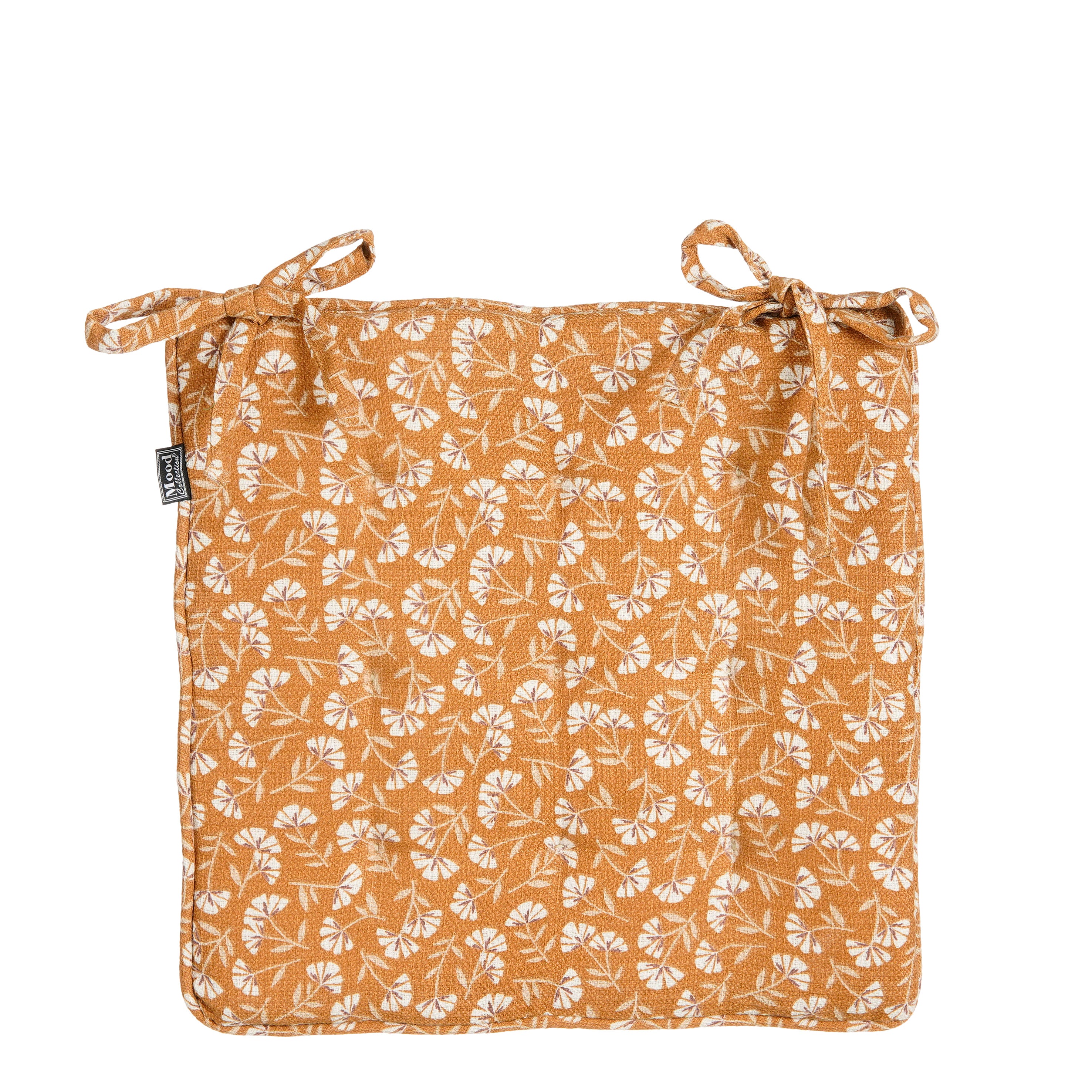 - Geel zitkussen met prachtige print van witte bloementjes