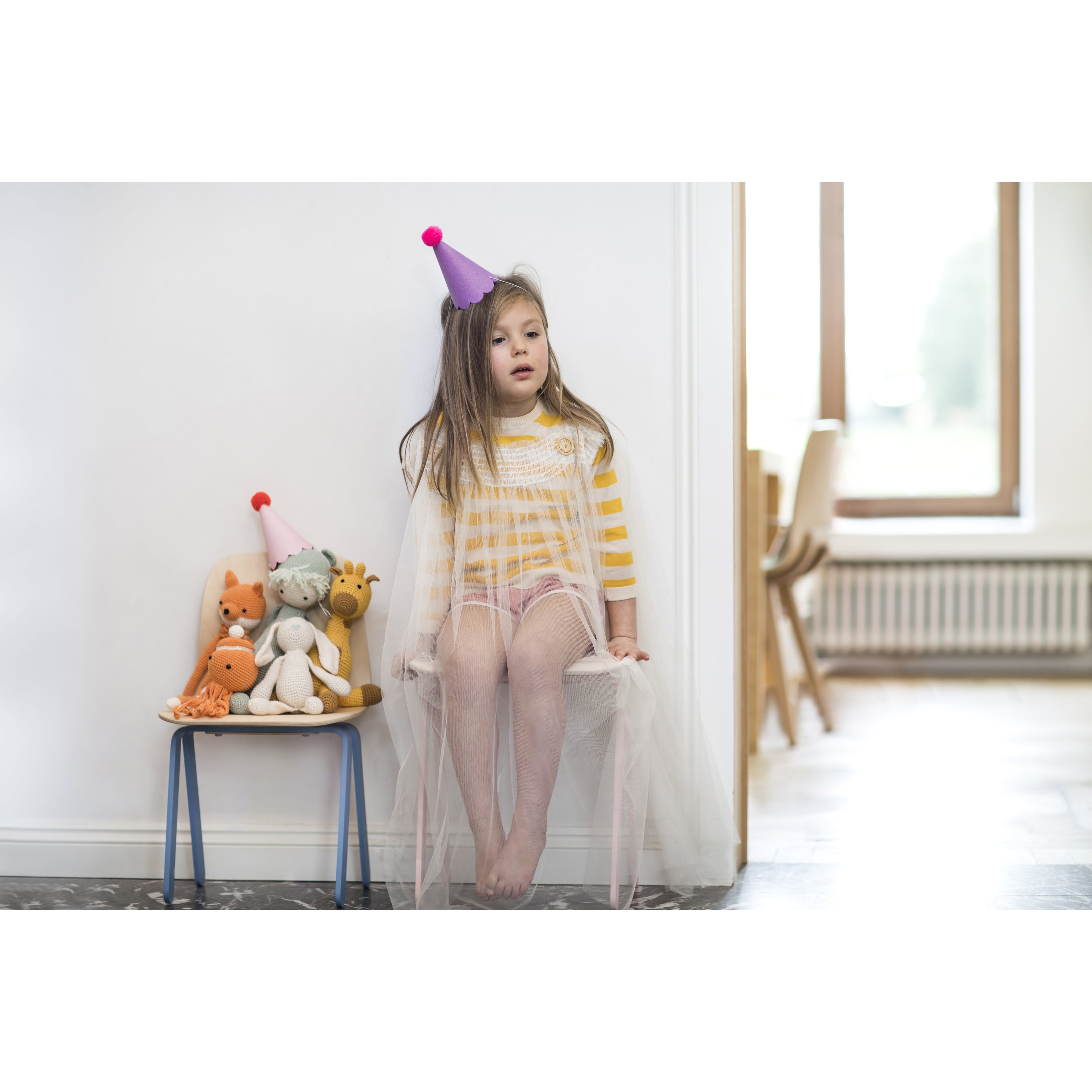 De hoogte van de zitting, gemeten vanaf de vloer. De ideale zithoogte bevindt zich tussen de 40 en 46 cm. Je zit het lekkerst met een ruimte van ongeveer 20 cm, tussen de stoelzitting en de onderkant van het tafelblad.