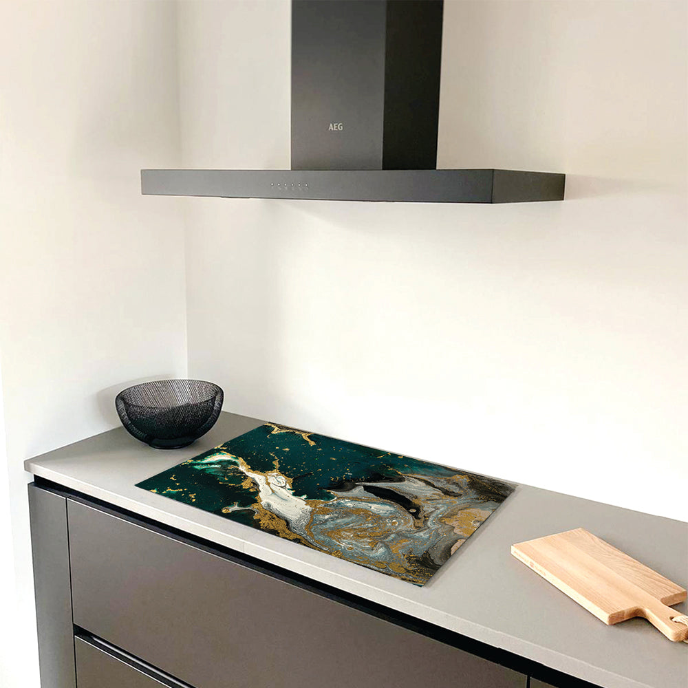 Inductie Beschermer - Exclusief - Marmer Smaragd Print - 90x52cm