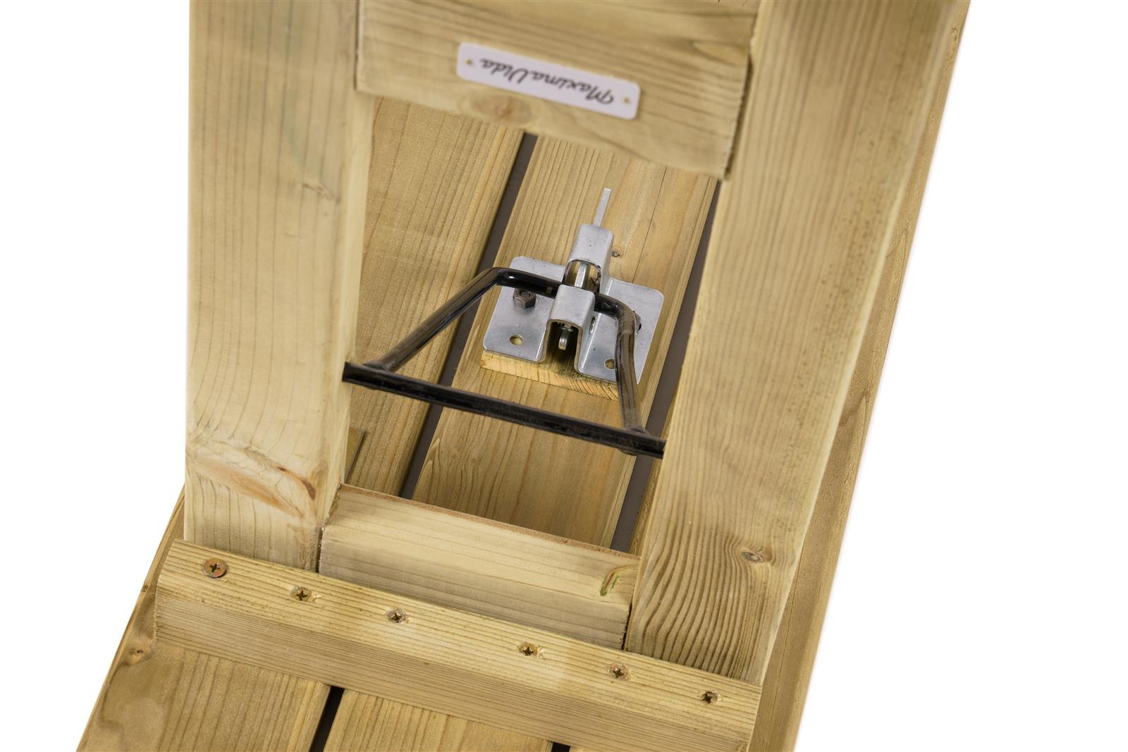De inklapbare picknicktafelsdfVilnius 200 cm is gemaakt uit ca. 3 cm dik geimpregneerd hout. De schroeven, die gebruikt worden om de planken op het onderstel te bevestigen liggen gelijk met de hoogte van het hout. Dit zorgt ervoor dat je lekker zit en niet met je broek achter de schroef blijft hangen. Nog een voordeel? Het maakt makkelijker schoon.