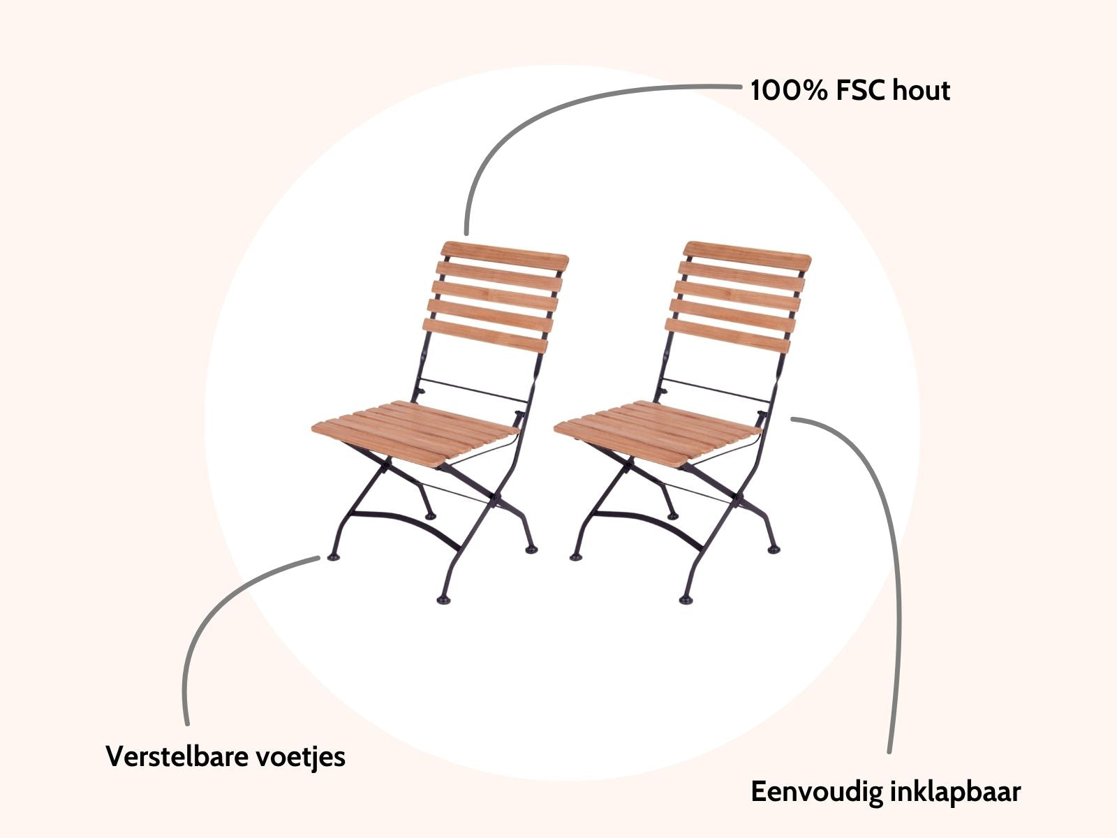 Waarom worden wij zo blij van onze inklapbare bistrosdfToscana stoelen? - Unieke comfortabelesdfschuine stand van de rugleuningsdf - Extra brede stoel, comfortabel voor mensen die wat groter zijnsdf - Excellent acacia hardhoutsdfmet 100% FSC- certificaat - Unieke verstelbare stoelpoten met bodembeschermers - Onderstel is eerst verzinkt en hierna chique mat zwart gecoat -sdfExtra comfortabele zit door ronding in rugleuning en zitvlaksdf