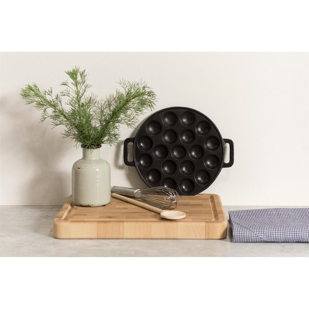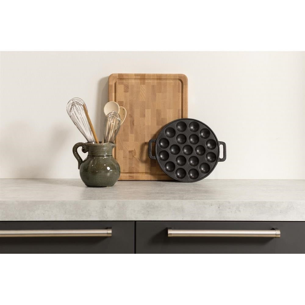 Inno Cuisinno Gietijzeren poffertjesplaat 24 cm Met deze gietijzeren poffertjesplaat van Inno Cuisinno maakt iedereen de lekkerste poffertjes. Door de geëmailleerde laag worden de poffertjes mooi egaal bruin gebakken. Maak overheerlijke poffertjes en bestrooi ze met poedersuiker voor een verrukkelijk Hollands gerecht. Lekkere poffertjes van een gietijzeren plaat Deze poffertjesplaat van Inno Cuisinno is gemaakt van ijzersterk gietijzer. Gietijzeren pannen zijn gemaakt om door te geven aan de volgende generatie. Ook deze gietijzeren poffertjesplaat zal nog vele jaren voor lekkere poffertjes zorgen.
