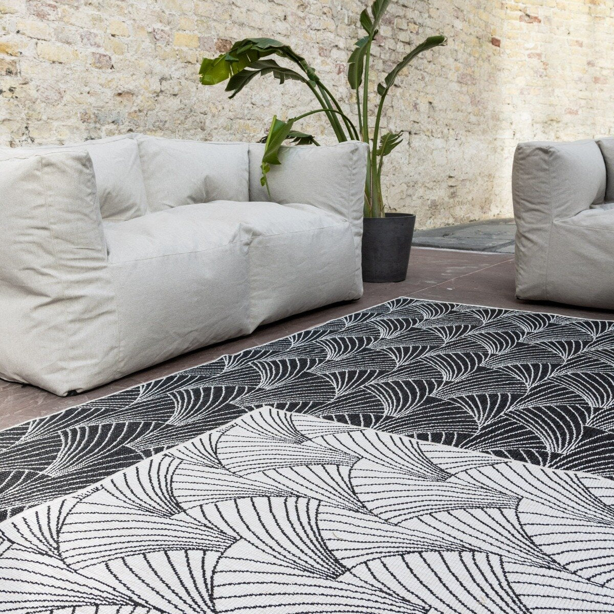 Interieur05 Buitenkleed Deco zwart|wit dubbelzijdig - 200x290 cm
