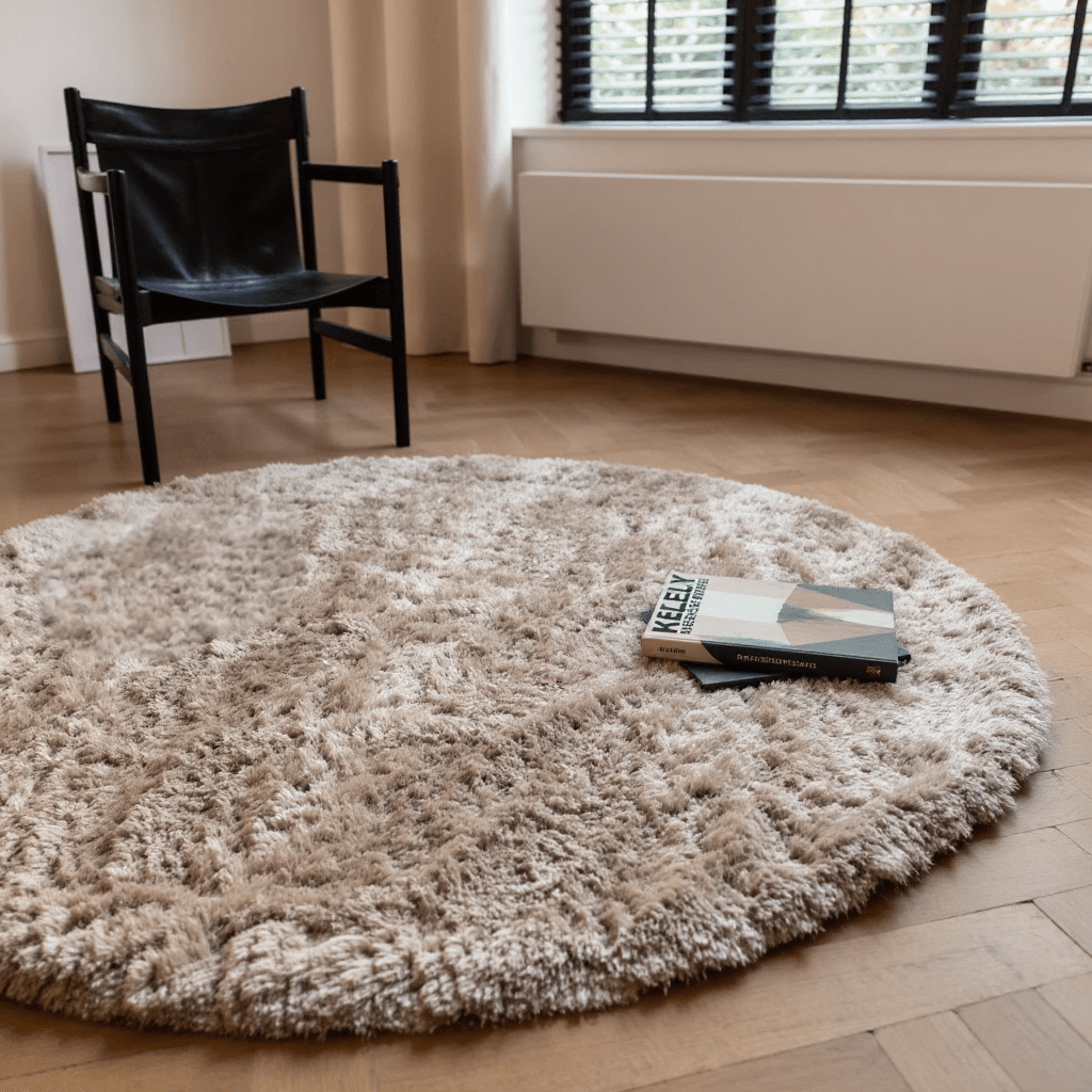 Interieur05 Rond hoogpolig vloerkleed Fender beige - 160 x 160 cm