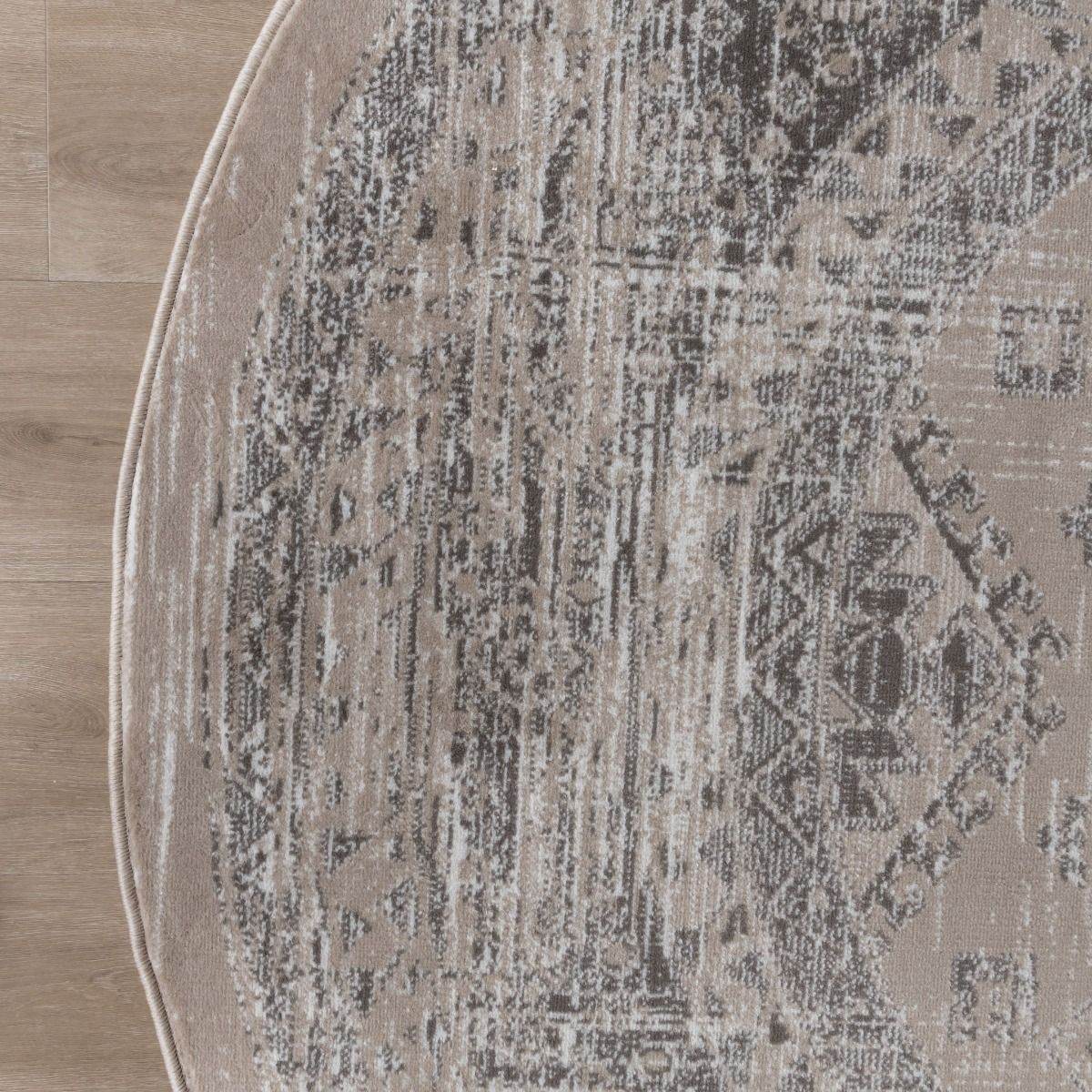 Interieur05 Rond vintage Vloerkleed Aila Zand|Beige - 240 x 240 cm
