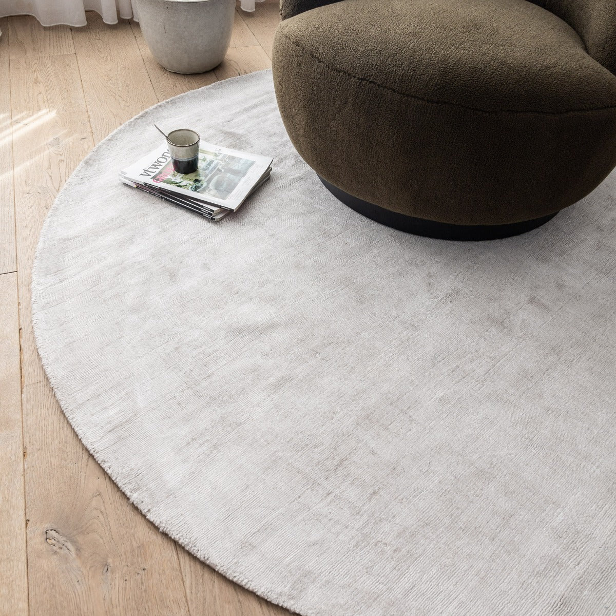 Interieur05 Vloerkleed Felva Zilver|Grijs Rond Viscose 180 cm