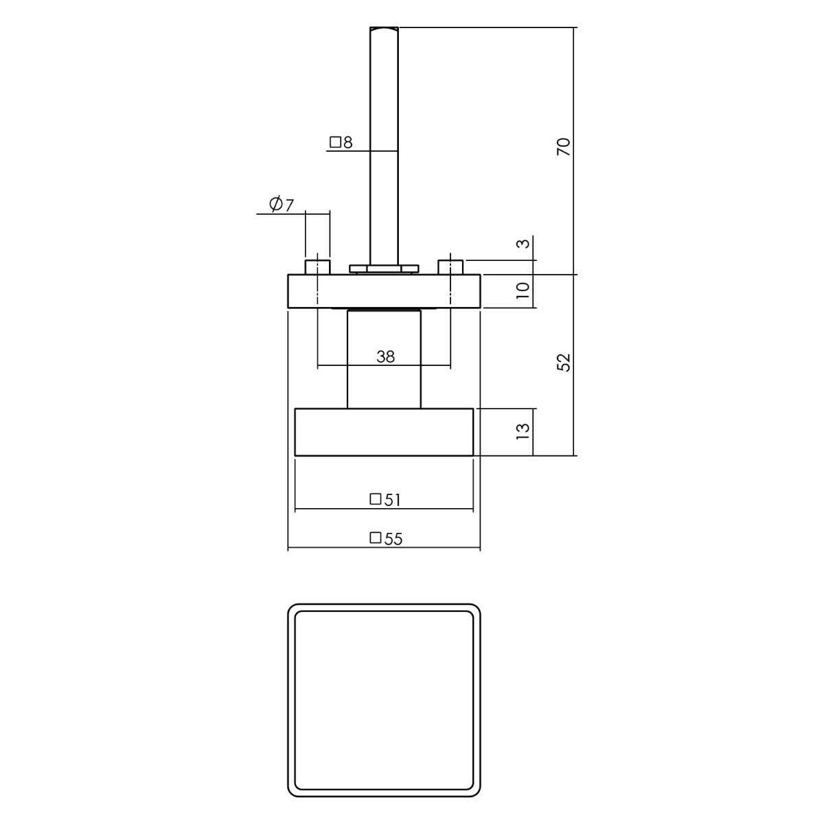Deze vierkante knop op rozet is speciaal bedoeld voor binnendeuren ten behoeve van een wisselgarnituur. Een wisselgarnituur wil zeggen dat aan de ene kant van de deur een deurkruk op rozet wordt geplaatst en aan de andere zijde een knop op rozet. De rozet is voorzien van nokken zodat hij beter op zijn plek wordt gehouden. Deze vierkante deurknop is uitgevoerd in de trendkleur van dit moment, mat zwart. De knop heeft een breedte 51 mm en een diepte van 52 mm. Montage is eenvoudig met het bijgeleverde bevestigingsmateriaal.