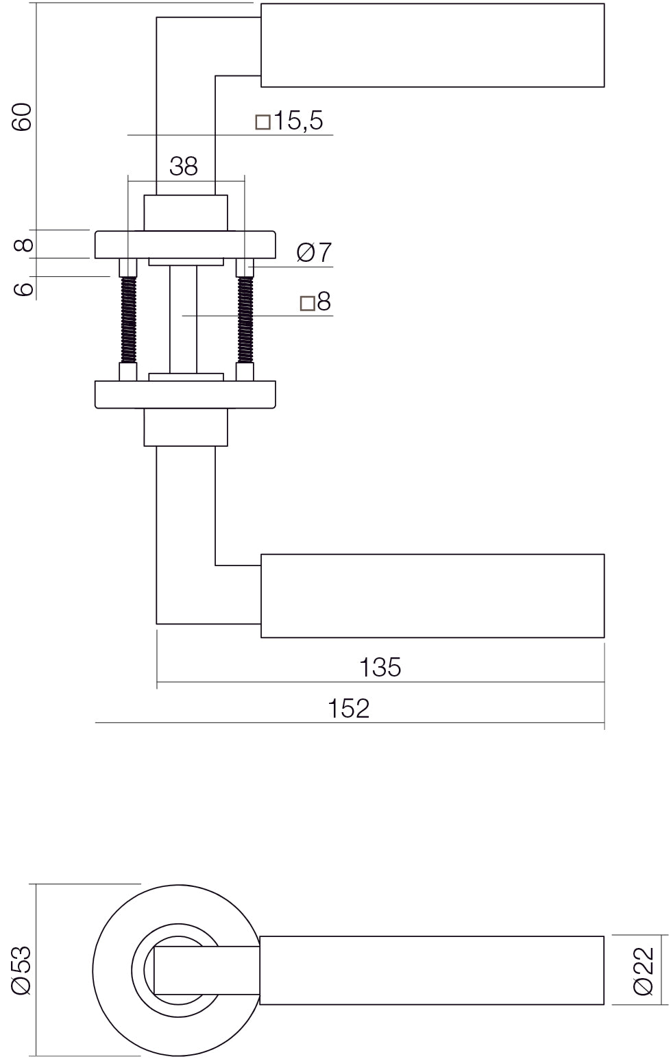 - De deurkruk is geveerd, waardoor deze terugveert naar horizontale positie