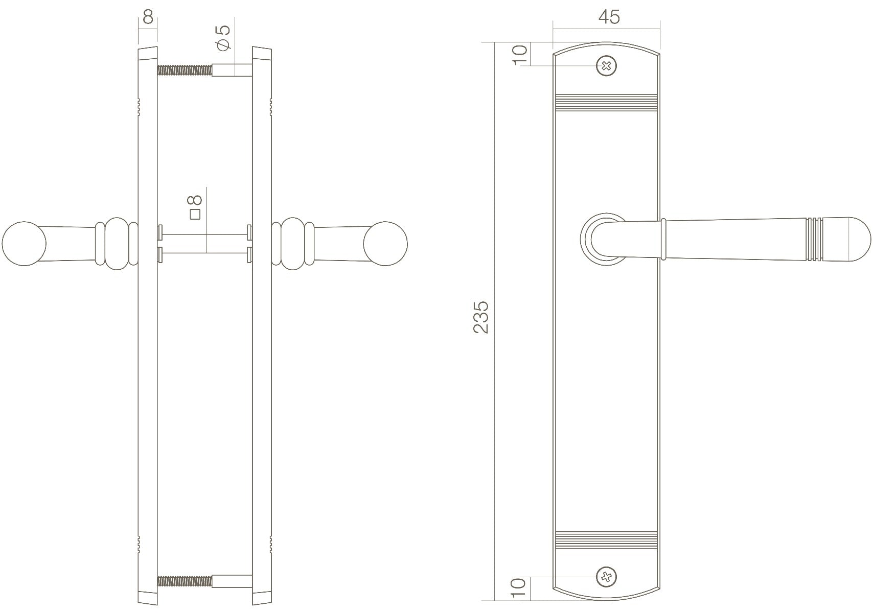 Intersteel Deurkruk Emily op schild 235x45x8 mm blind messing gelakt