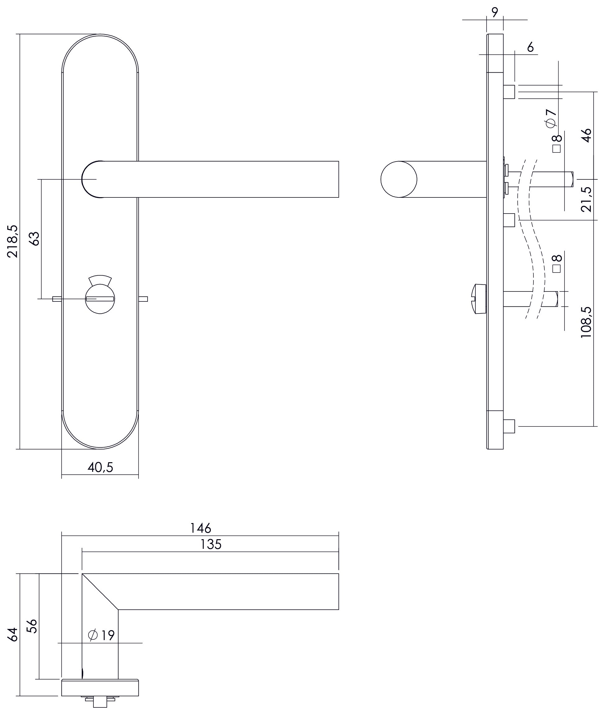 | Uitvoeringen | Toilet-/badkamersluiting 63 mm rechts |