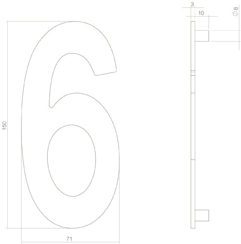 Roestvast stalen huisnummer 6 in een mat zwarte uitvoering. Een lange levensduur door het gebruik van massief rvs. Dit huisnummer heeft een hoogte van 150 mm en een dikte van 3 mm. Montage is eenvoudig door het bijgeleverde bevestigingsmateriaal.