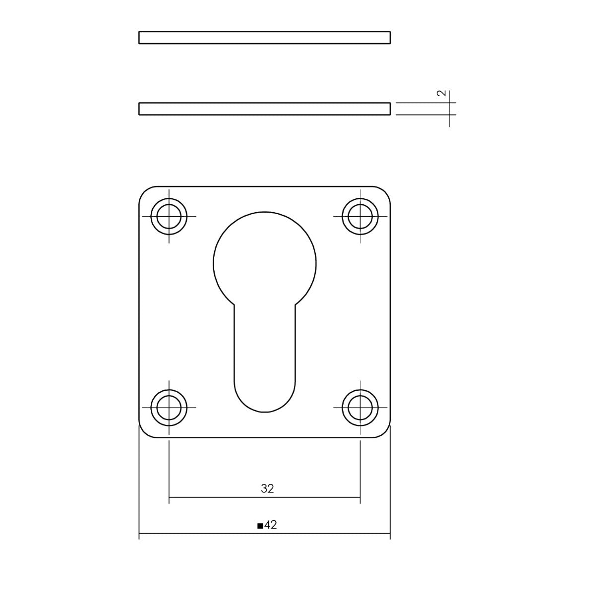 Intersteel Rozet met profielcilindergat vierkant 42x42x2 mm rvs