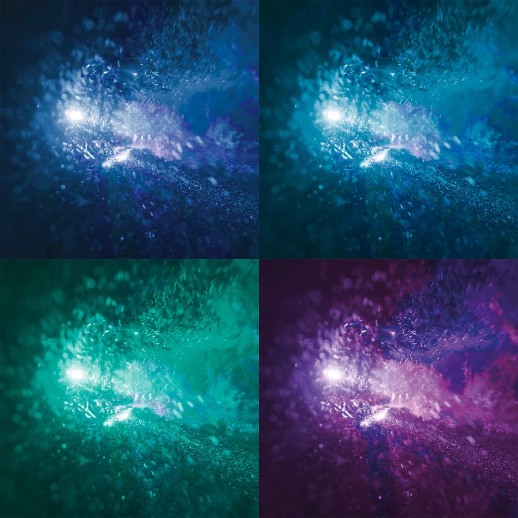 - Licht op in 5 verschillende kleuren: wit, groen, groenblauw, blauw en paars