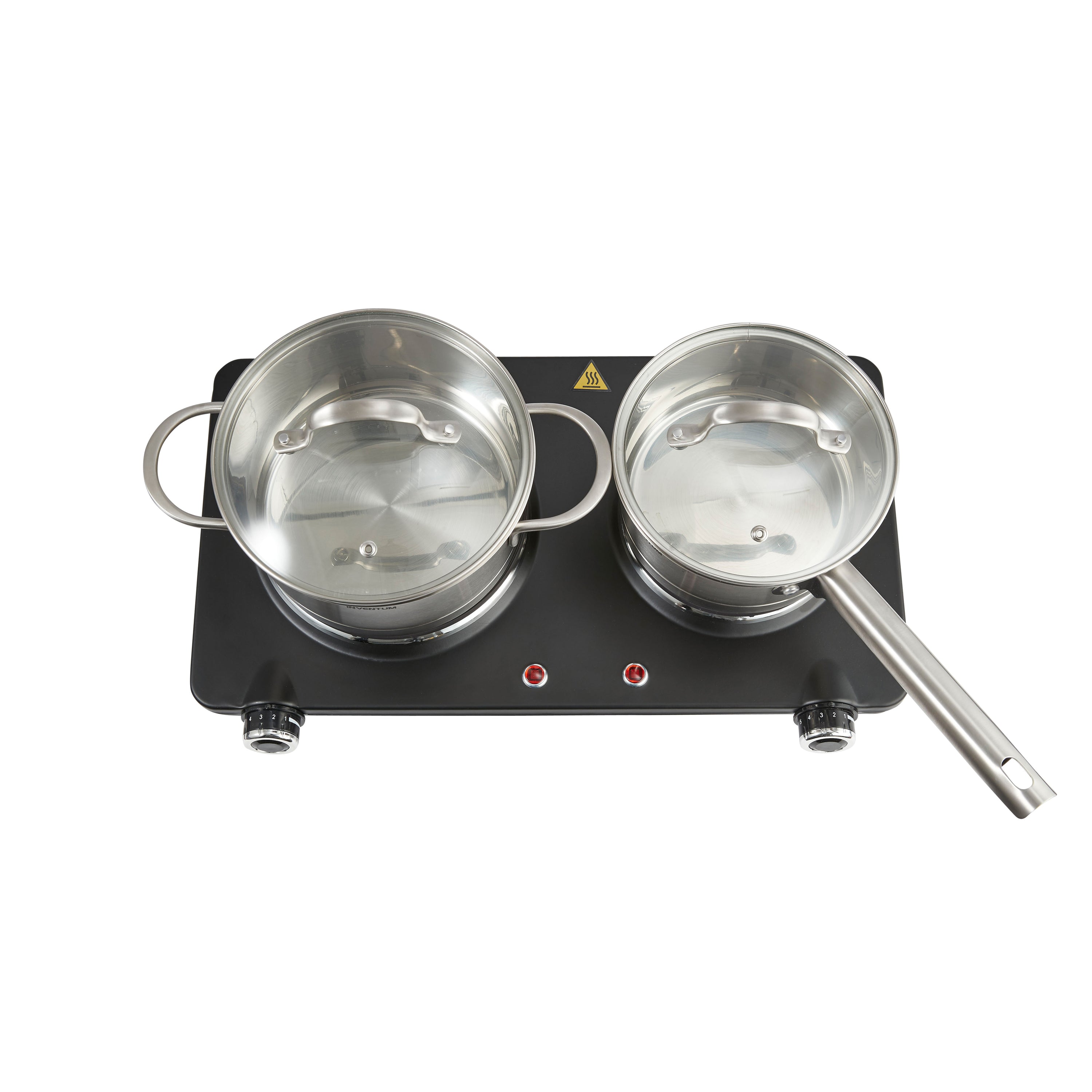 Deze elektrische dubbele kookplaat van Inventum is onmisbaar in de keuken. Dankzij het compacte design is het ideaal als je ruimte beperkt is of als je gaat kamperen. De dubbele kookplaat van Inventum beschikt over twee kookpitten met elk een eigen formaat, namelijk 15 en 18 cm. Daarnaast is het een krachtige kookplaat met een vermogen van 1900 en 2250 Watt. Per kookpit is de juiste temperatuur makkelijk in te stellen via de draaiknoppen. Experimenteer en geniet van je maaltijd!