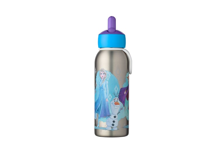 Cool én koel het schoolplein op met deze mooie flip-up isoleerfles met Frozen II print. De isoleerfles zorgt ervoor dat het drinken van jouw zoon of dochter de hele dag lekker koel blijft. De fles is voozien van een handig flip-up drinksysteem, waarmee zelfs de kleinste kinderhandjes overweg kunnen. Even de tuit omhoog duwen en drinken maar! De tuit is verbonden met een rietje en de fles is gegarandeerd lekvrij. De isoleerfles kan in de schooltas, maar is ook voorzien van een handig draaglusje. De flip-up fles is ook geschikt voor koolzuurhoudende dranken. We raden je aan om bij koolzuurhoudende dranken de fles zonder het rietje te gebruiken. Natuurlijk is de fles volledig BPA-vrij en is hij gemakkelijk schoon te maken. Om ervoor te zorgen dat je zo lang mogelijk van je roestvrijstalen fles kunt genieten, raden we aan je fles met de hand af te wassen. De dop mag in de vaatwasser.