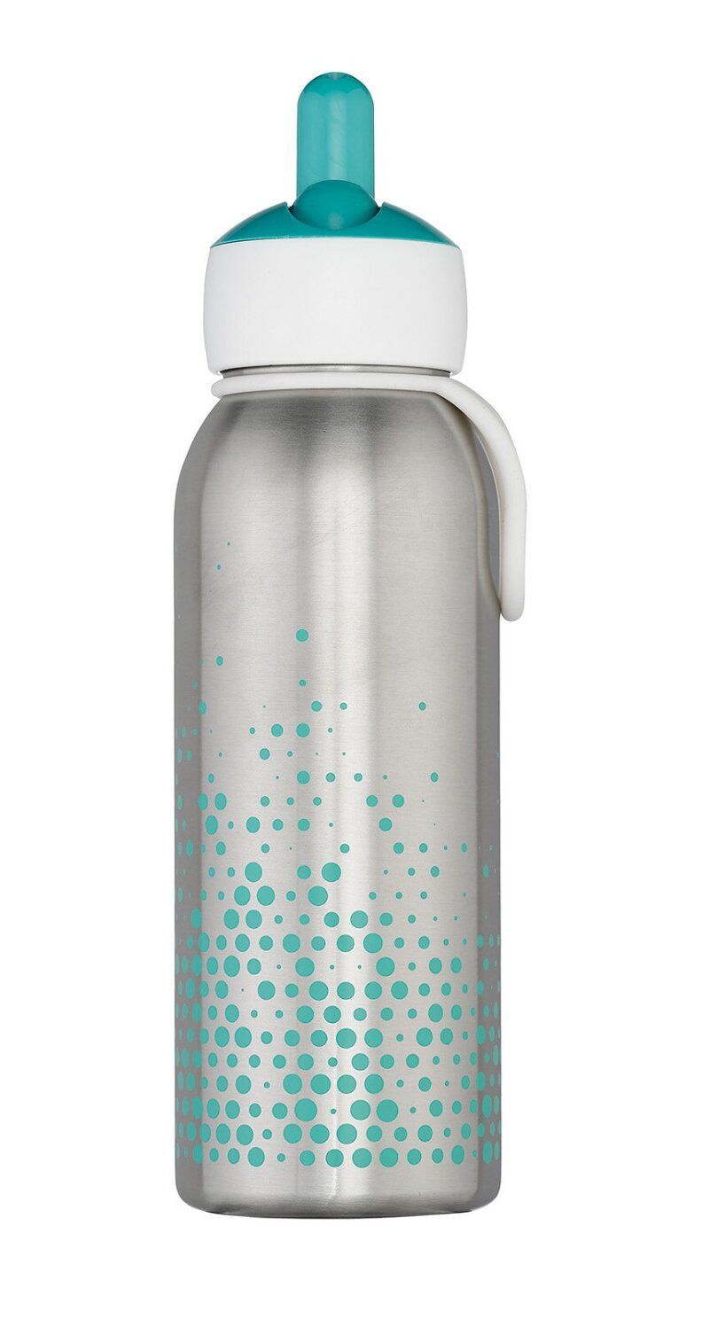 Cool en koel het schoolplein op met de flip-up isoleerfles in turquoise. De isoleerfles zorgt ervoor dat het drinken van jouw zoon of dochter de hele dag lekker koel blijft. De fles is voorzien van een handig flip-up drinksysteem, waarmee zelfs de kleinste kinderhandjes overweg kunnen. Even de tuit omhoog duwen en drinken maar! De tuit is verbonden met een rietje en de fles is gegarandeerd lekvrij. De isoleerfles kan in de schooltas, maar is ook voorzien van een handig draaglusje. De flip-up fles is ook geschikt voor koolzuurhoudende dranken. We raden je aan om bij koolzuurhoudende dranken de fles zonder het rietje te gebruiken. Natuurlijk is de fles volledig BPA-vrij en is hij gemakkelijk schoon te maken. Om ervoor te zorgen dat je zo lang mogelijk van je roestvrijstalen fles kunt genieten, raden we aan je fles met de hand af te wassen. De dop mag in de vaatwasser.