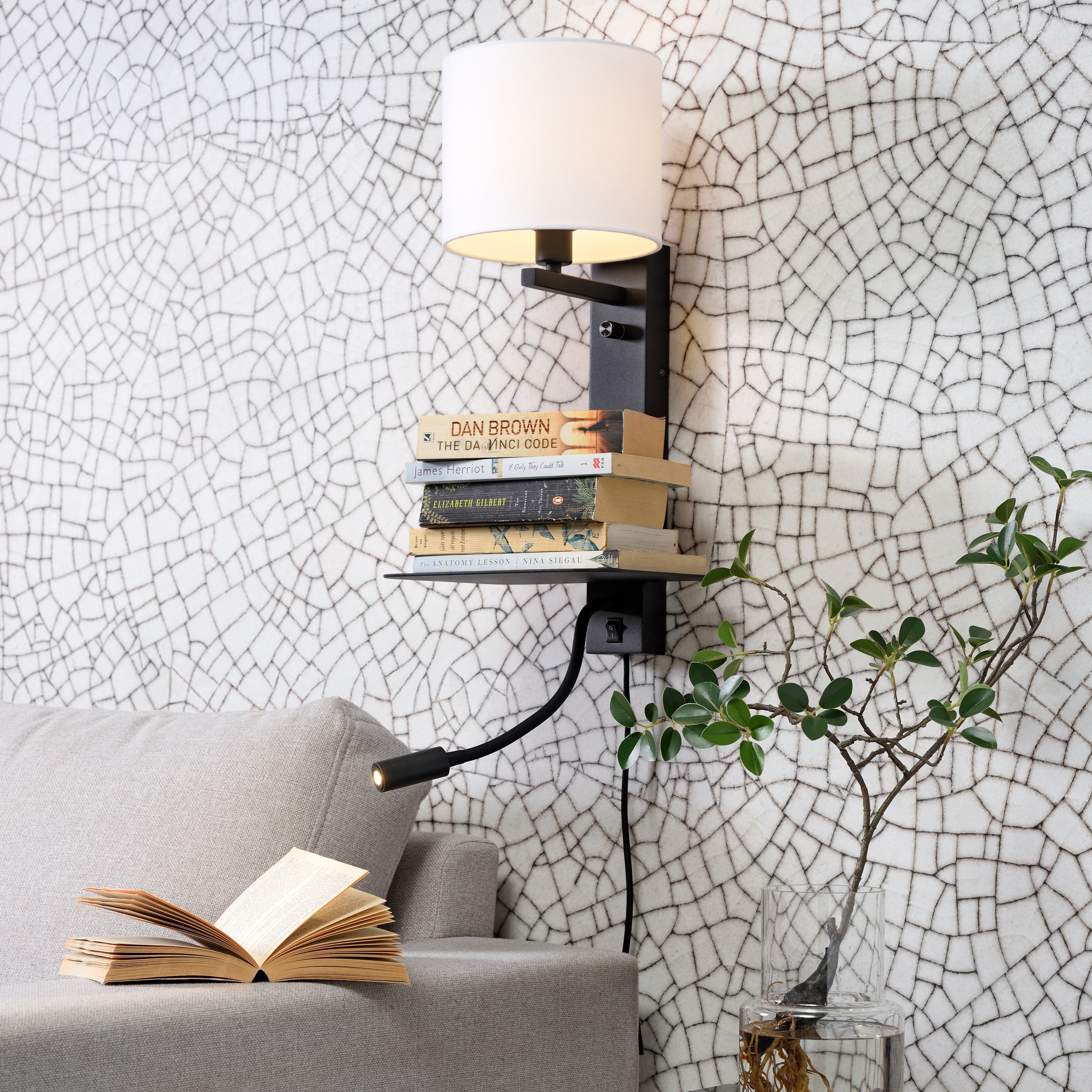 it's about RoMi Florence Wandlamp met Leeslamp - Zwart / Wit