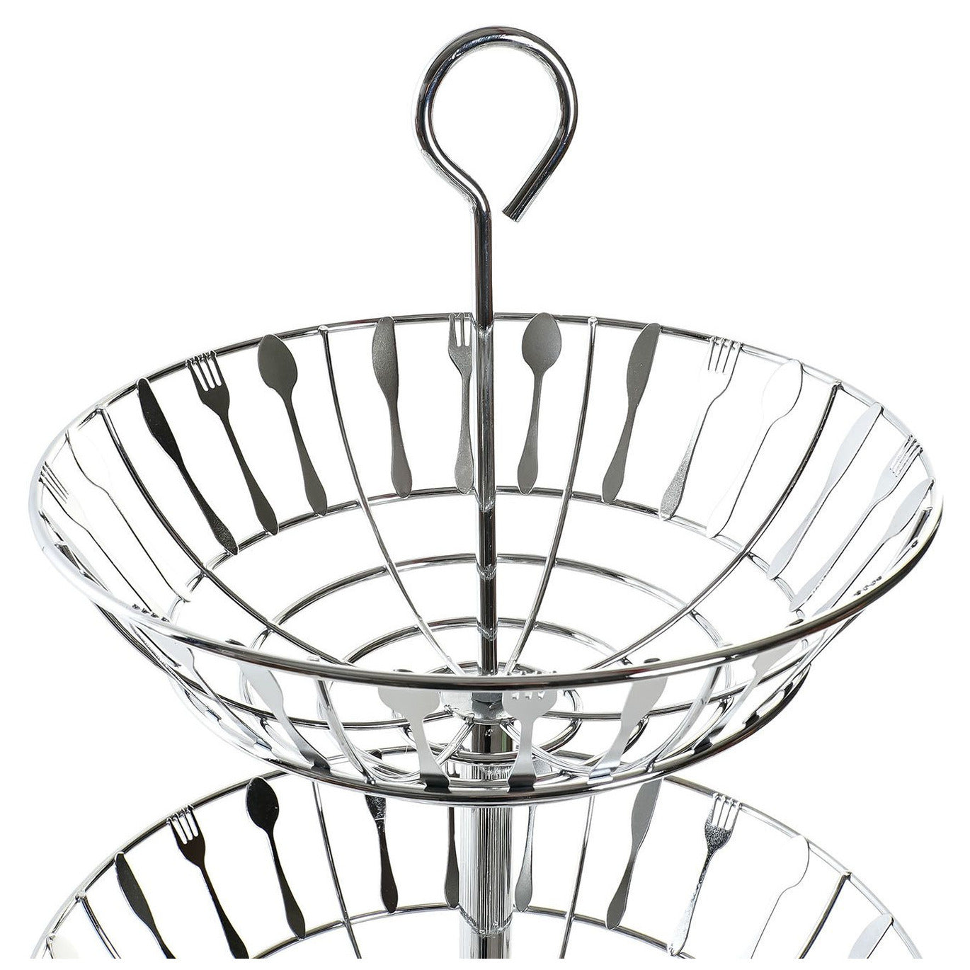 Items Fruitschaal - etagere - 3-laags - zilver - bestek patroon