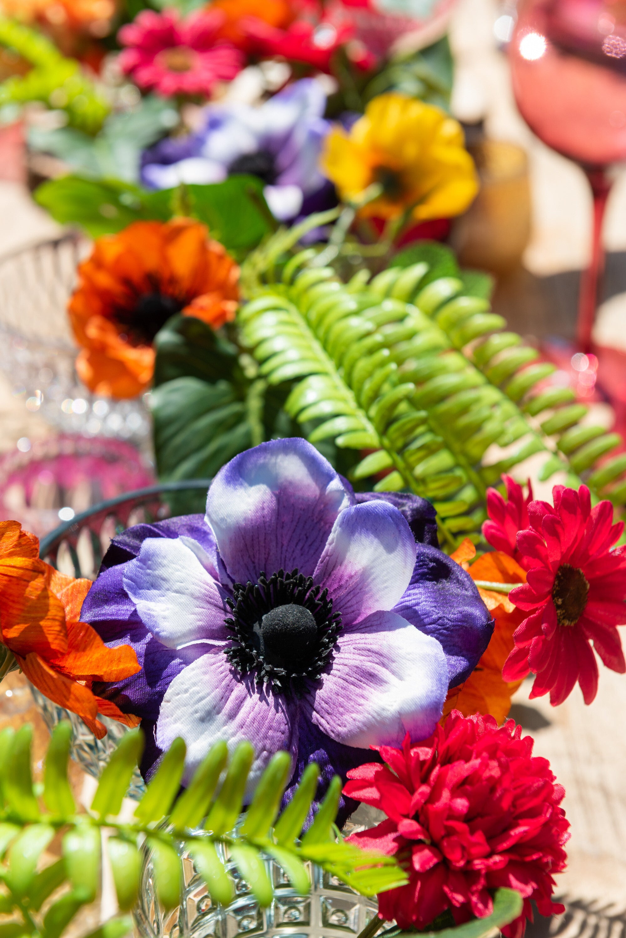 J-Line bloem Anemoon - kunststof - paars|wit - Ø 10.5 cm