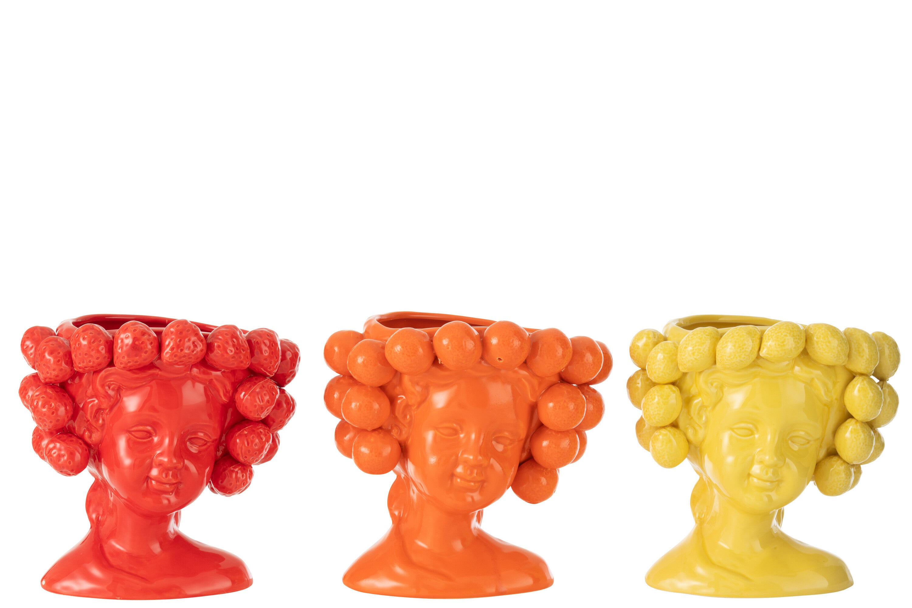 J-Line bloempot Aardbeien Meisje - keramiek - rood - Ø 16.5 cm