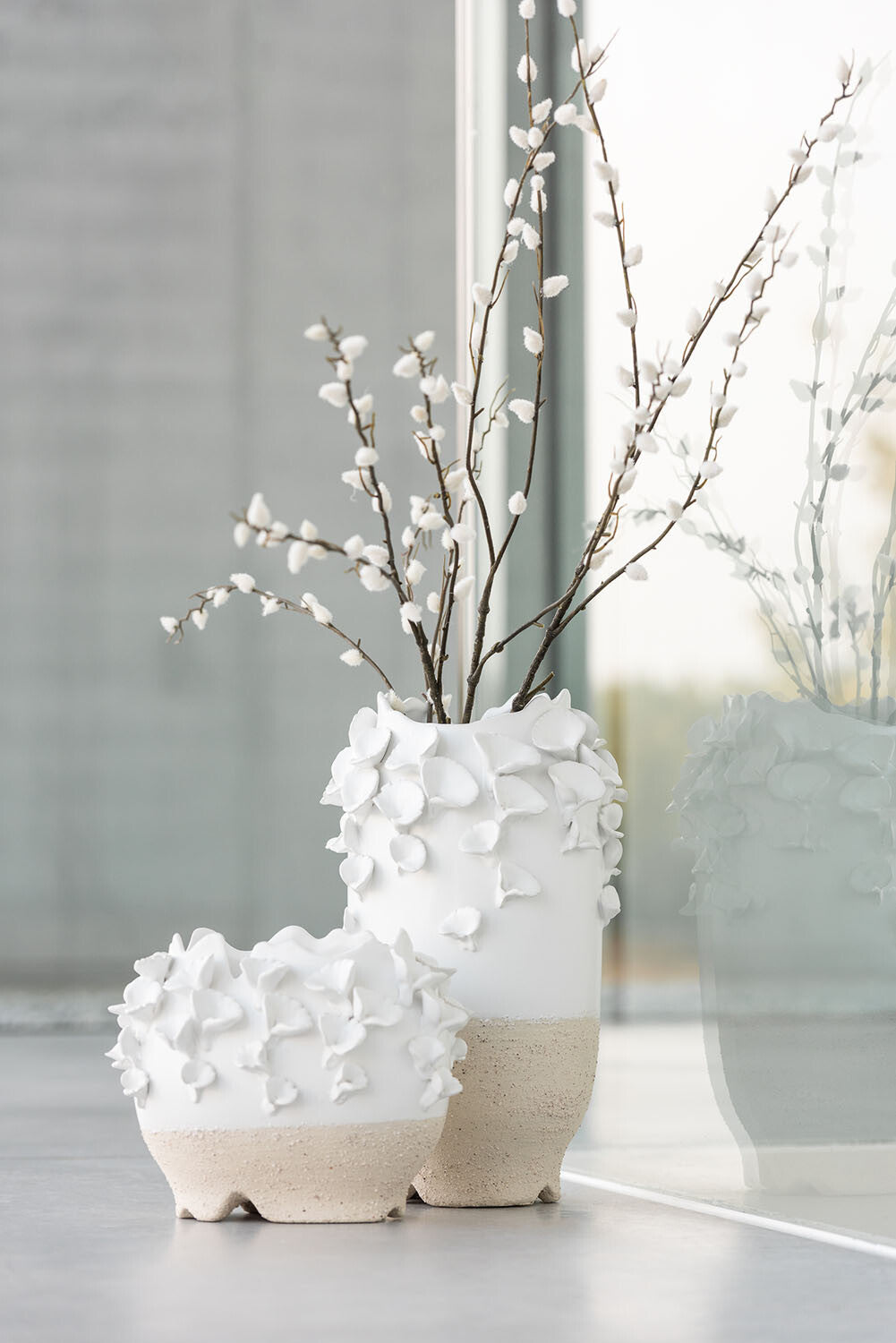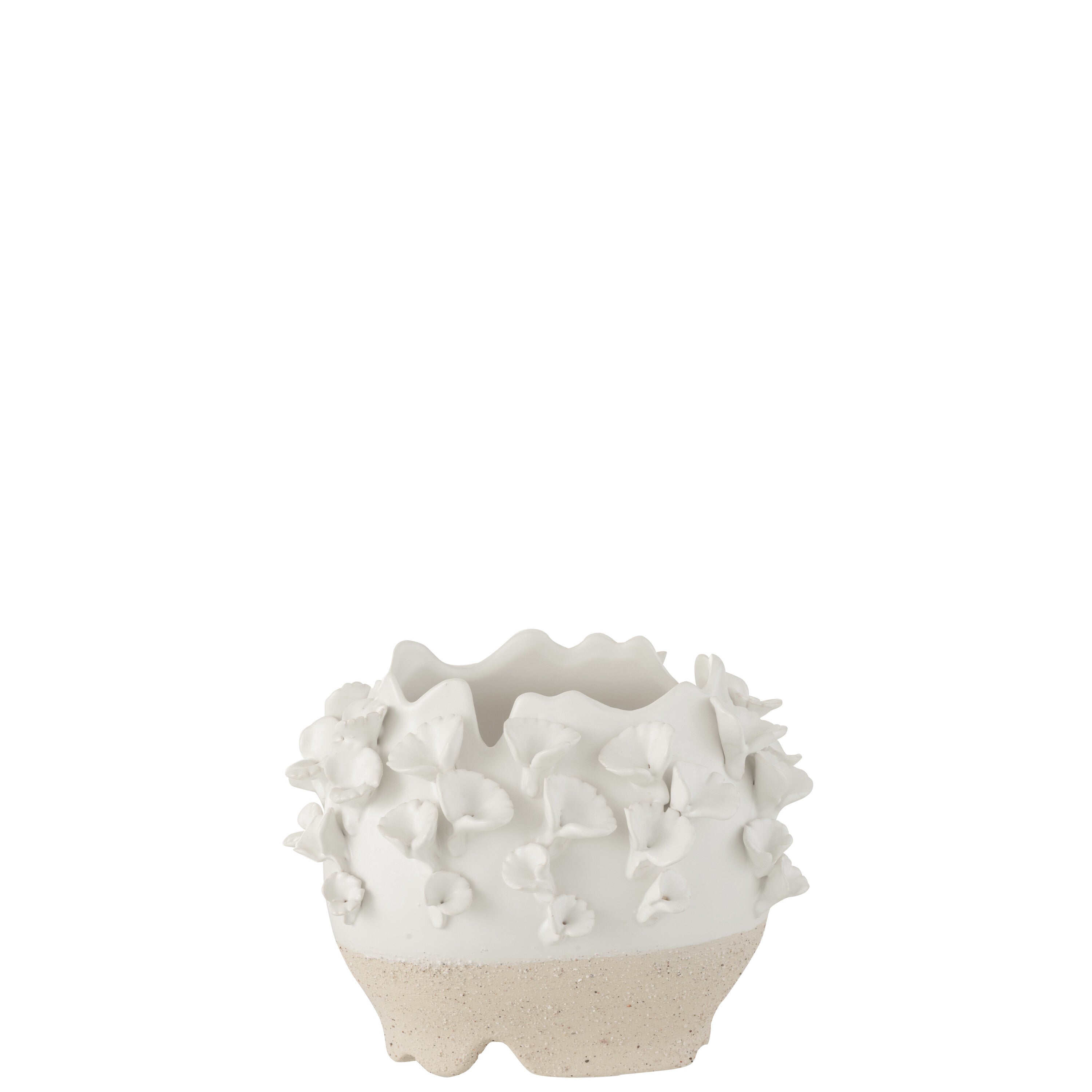 J-Line bloempot Anemone - keramiek - wit|beige - Ø 17 cm