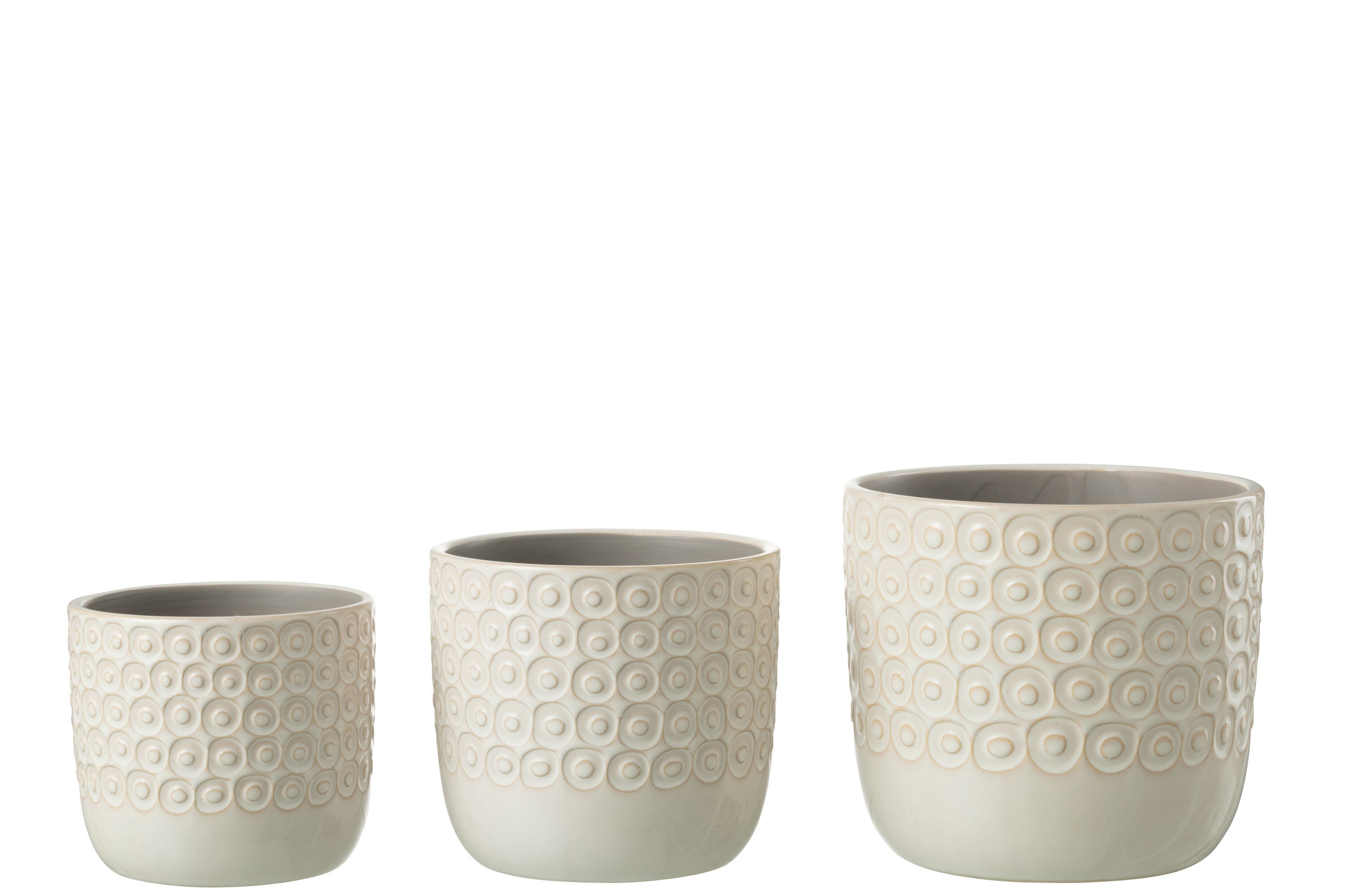 J-Line bloempot Bol - keramiek - wit - small - 2 stuks - Ø 12 cm