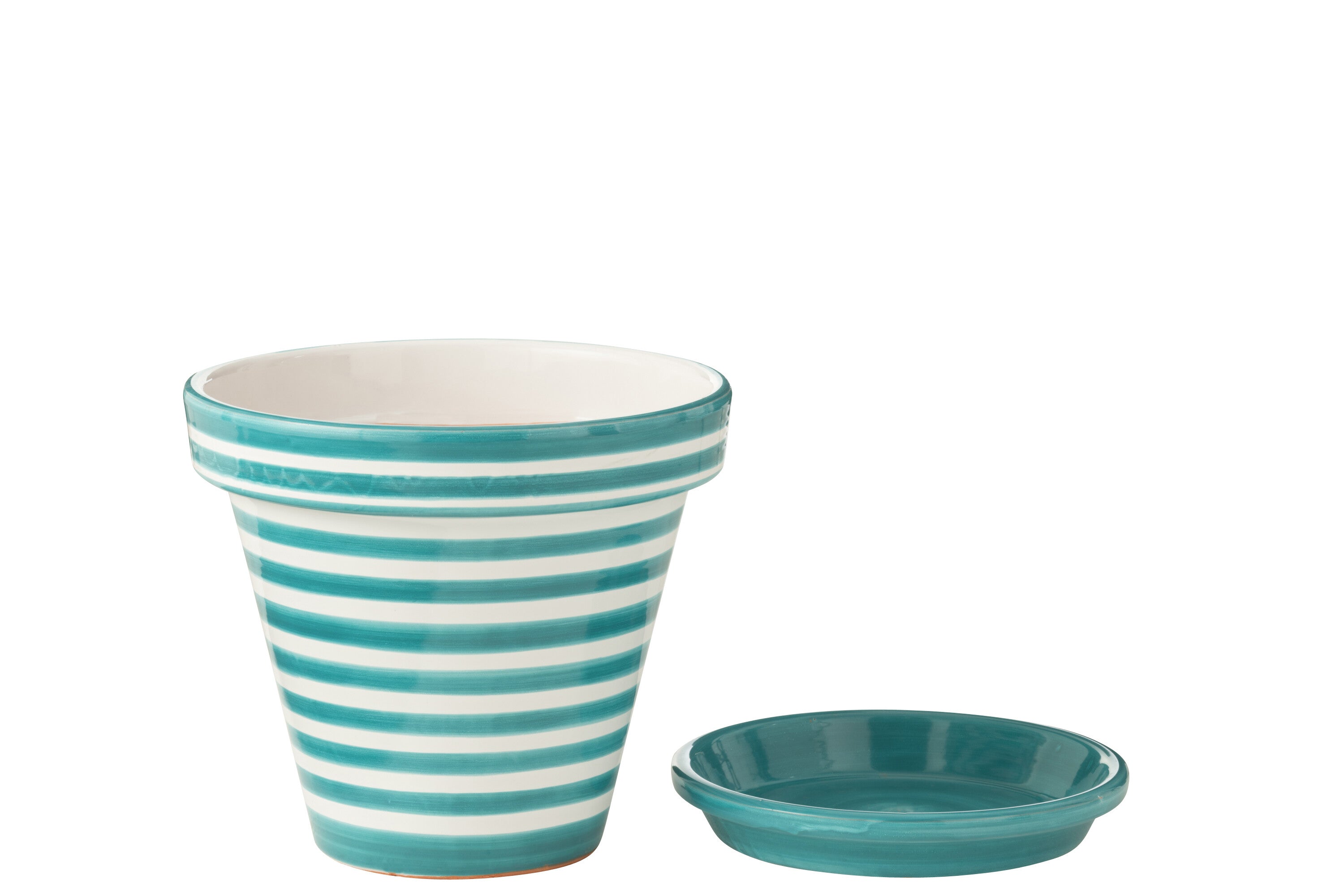J-Line bloempot Granada Stripes Handmade + Painted - keramiek - aqua - large - Ø 35 cm
