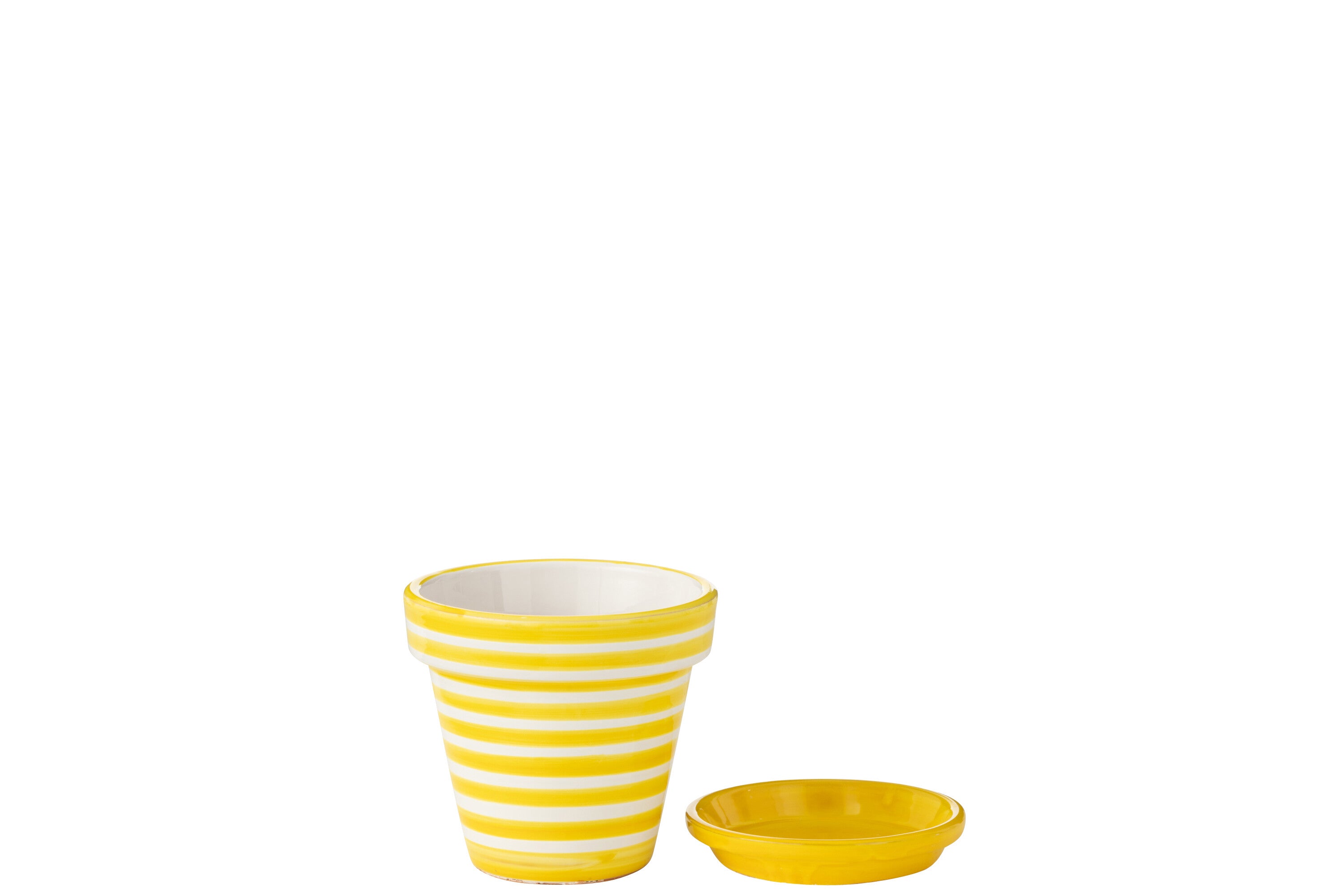 J-Line bloempot Granada Stripes Handmade + Painted - keramiek - geel - small - Ø 21 cm