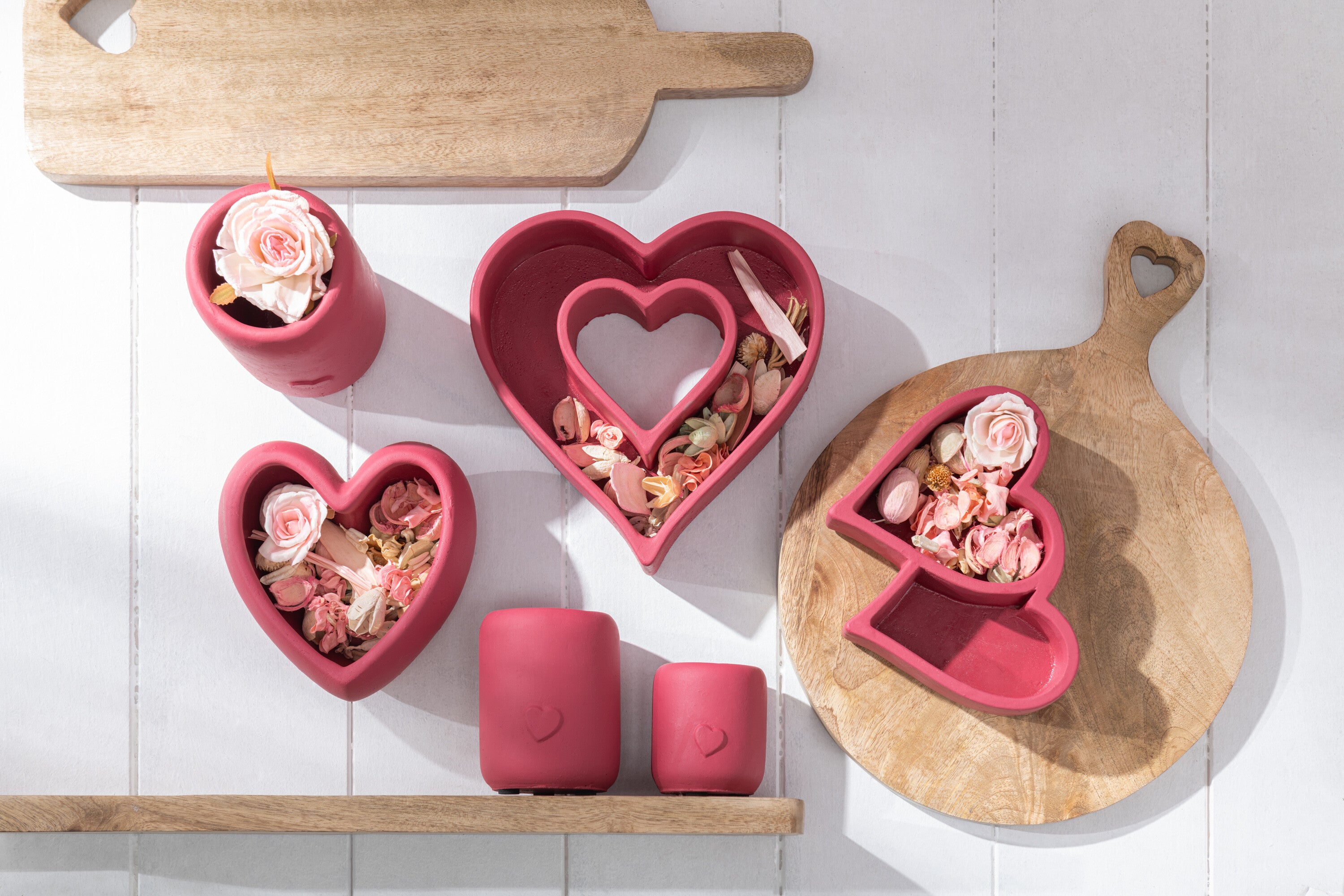 J-Line Bloempot Hart Hoog Cement Rood Large