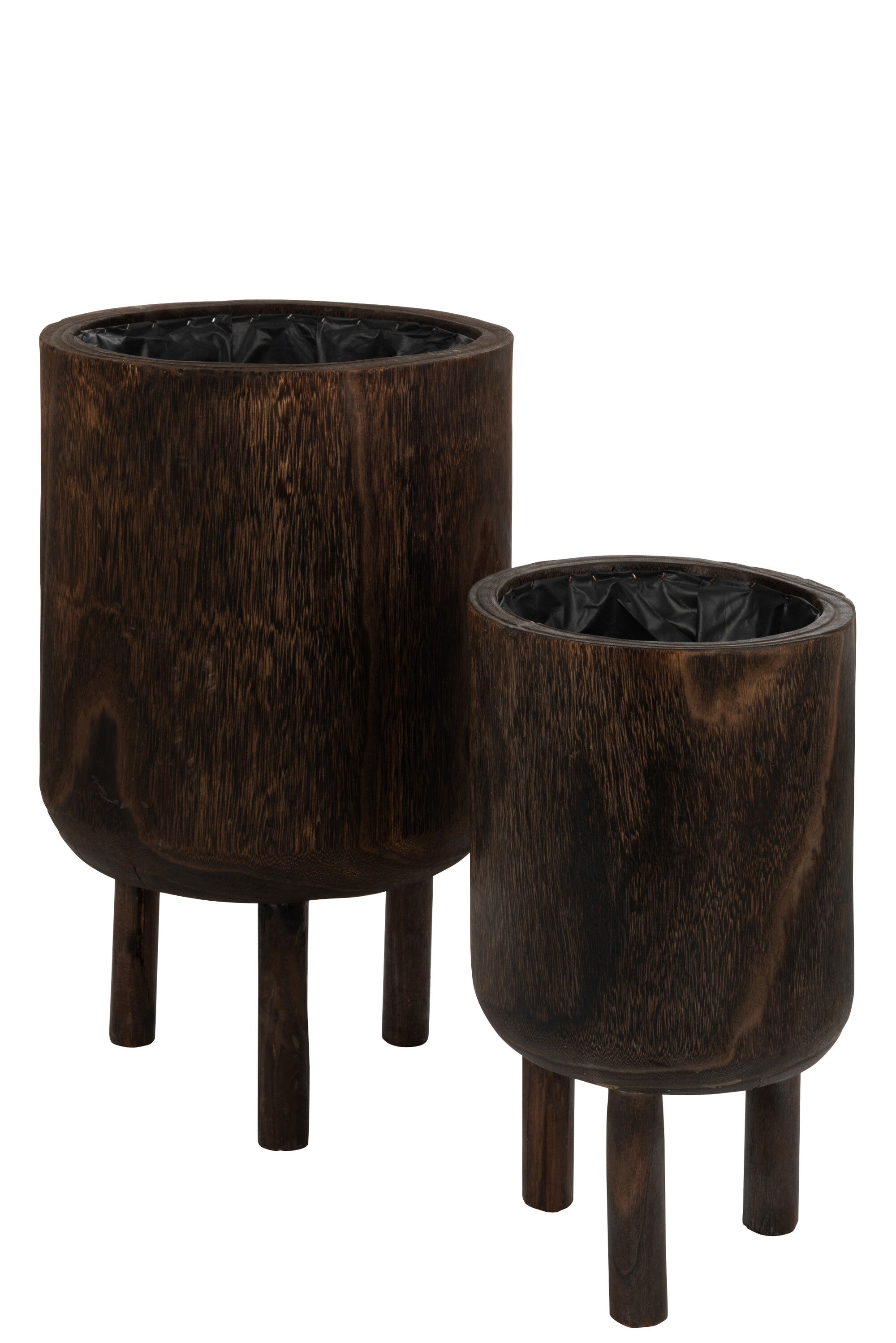 J-Line bloempot Op Voet Paulownia - hout - bruin - large - Ø 32 cm