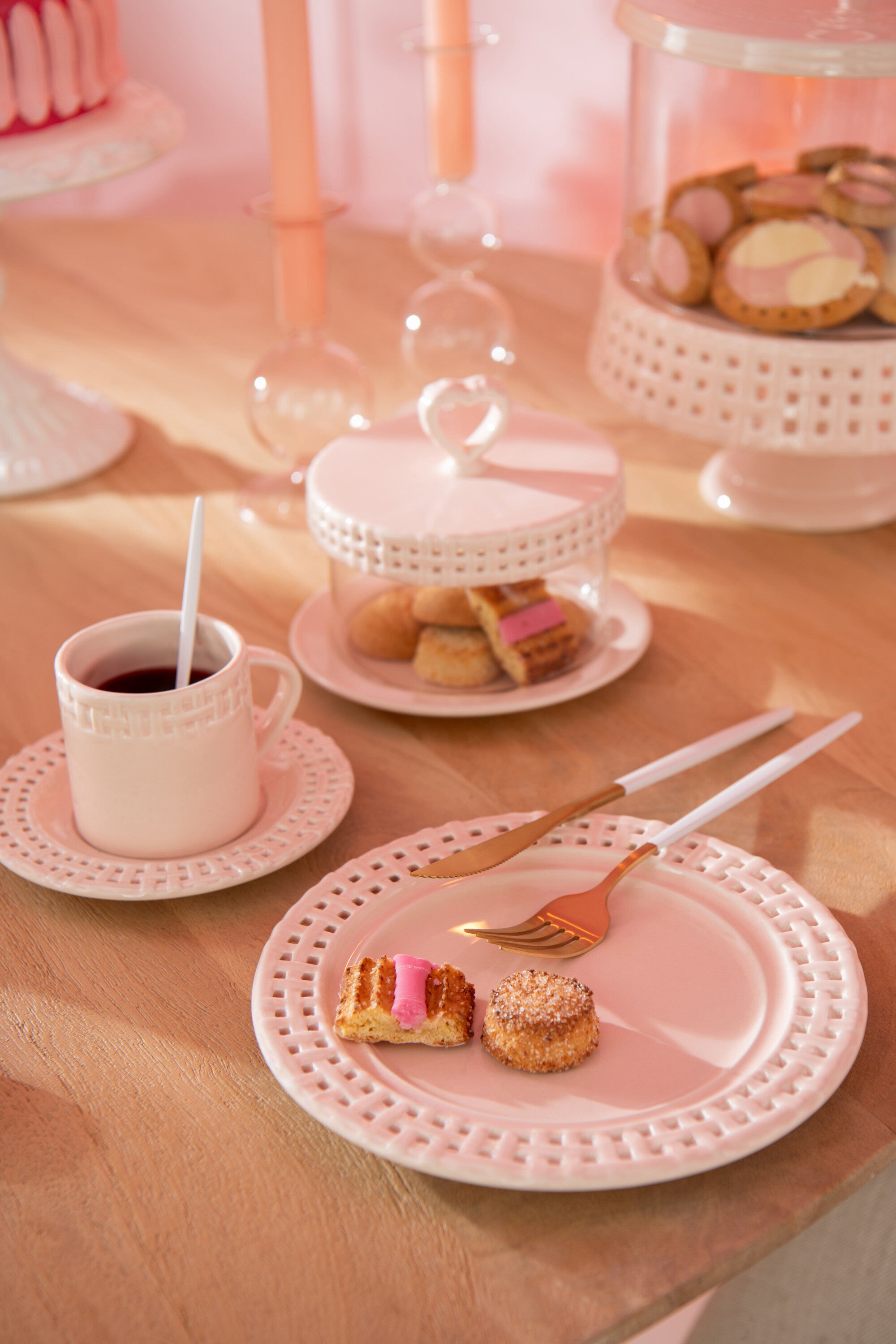 J-Line bord Rond - keramiek - roze - 4 stuks