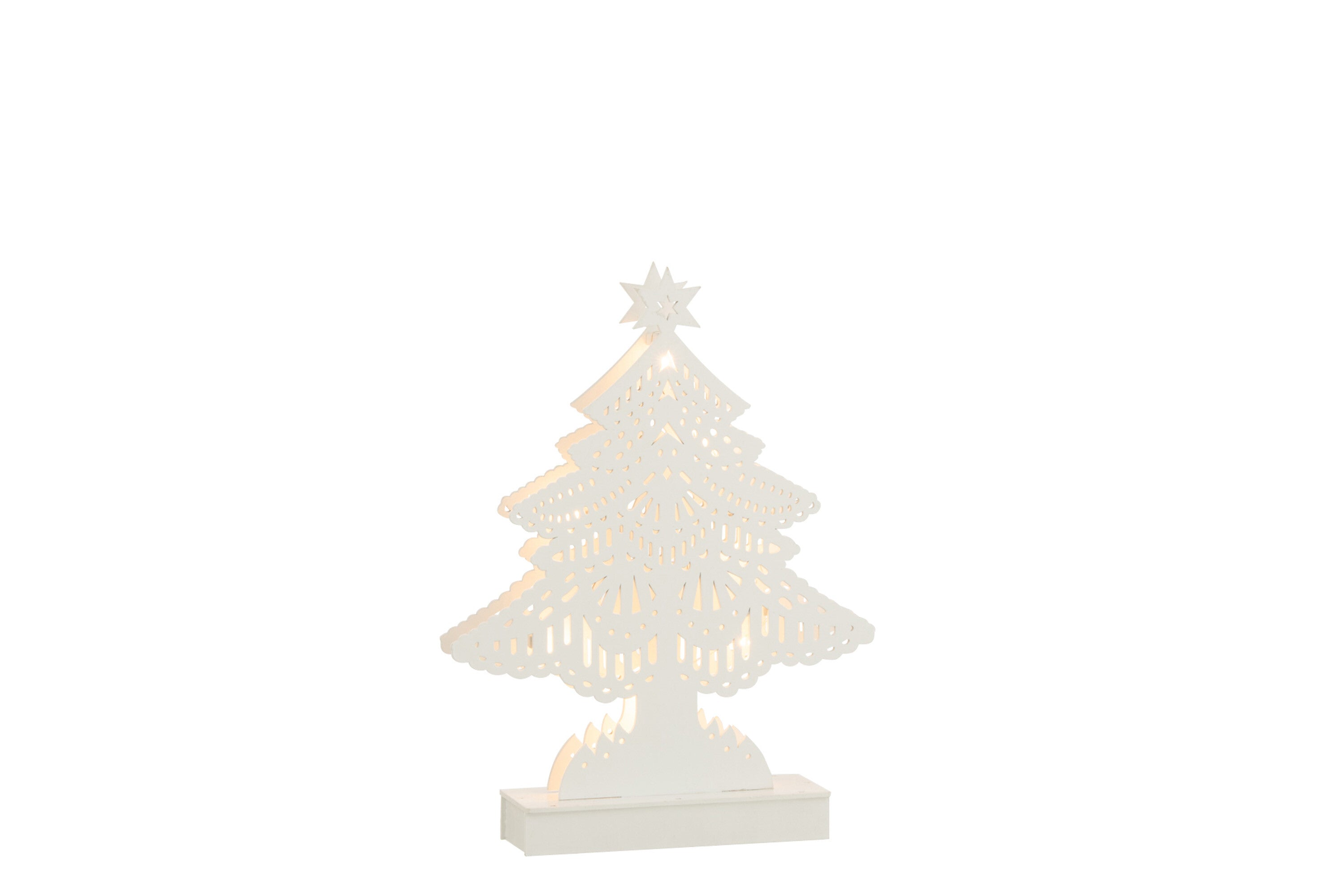 J-Line decoratie Kerstboom - hout - wit - large - LED lichtjes