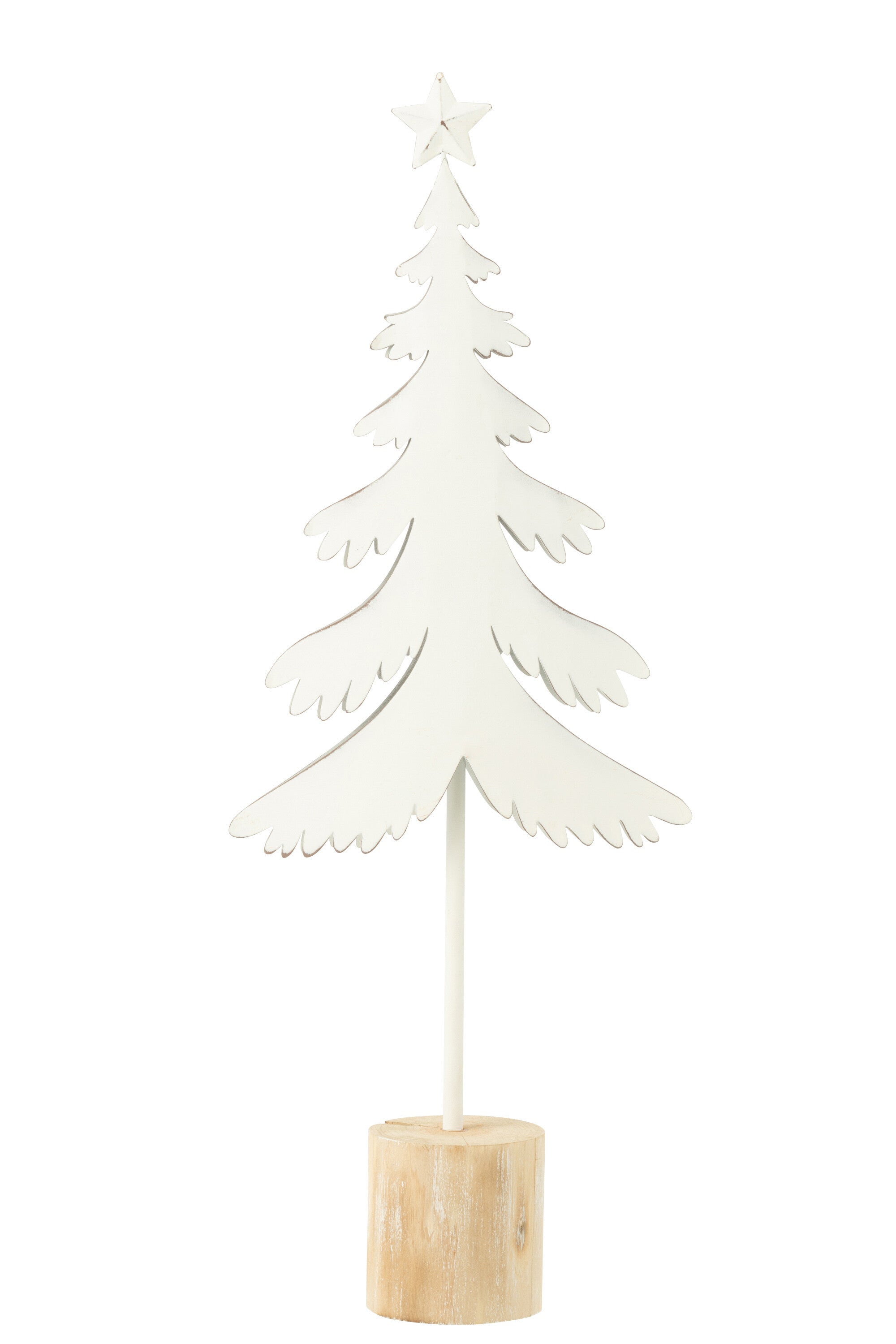 J-Line decoratie Kerstboom Op Voet + Ster - metaal - hout - wit - large