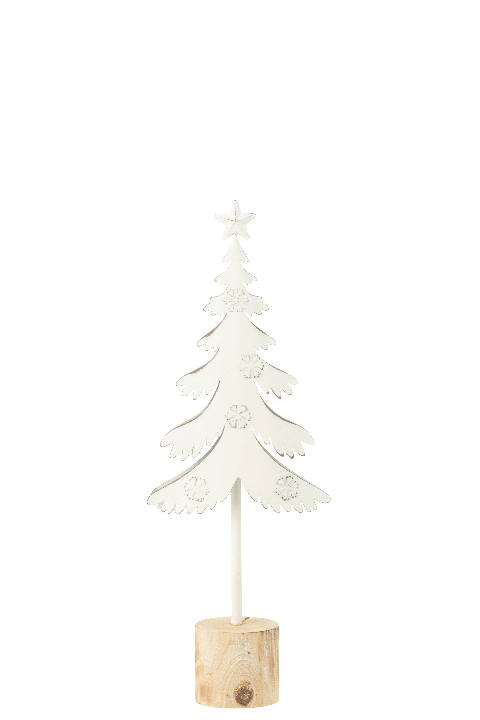 J-Line decoratie Kerstboom Op Voet + Ster - metaal - hout - wit - small