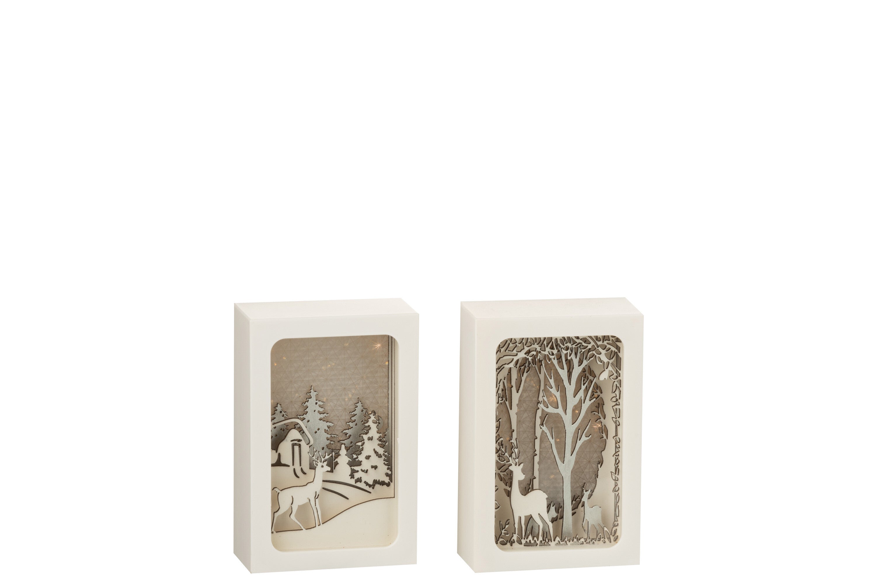 J-Line decoratie kerstdorpje - kader 3D winter - pvc|glas - zilver - 2 stuks - LED lichtjes
