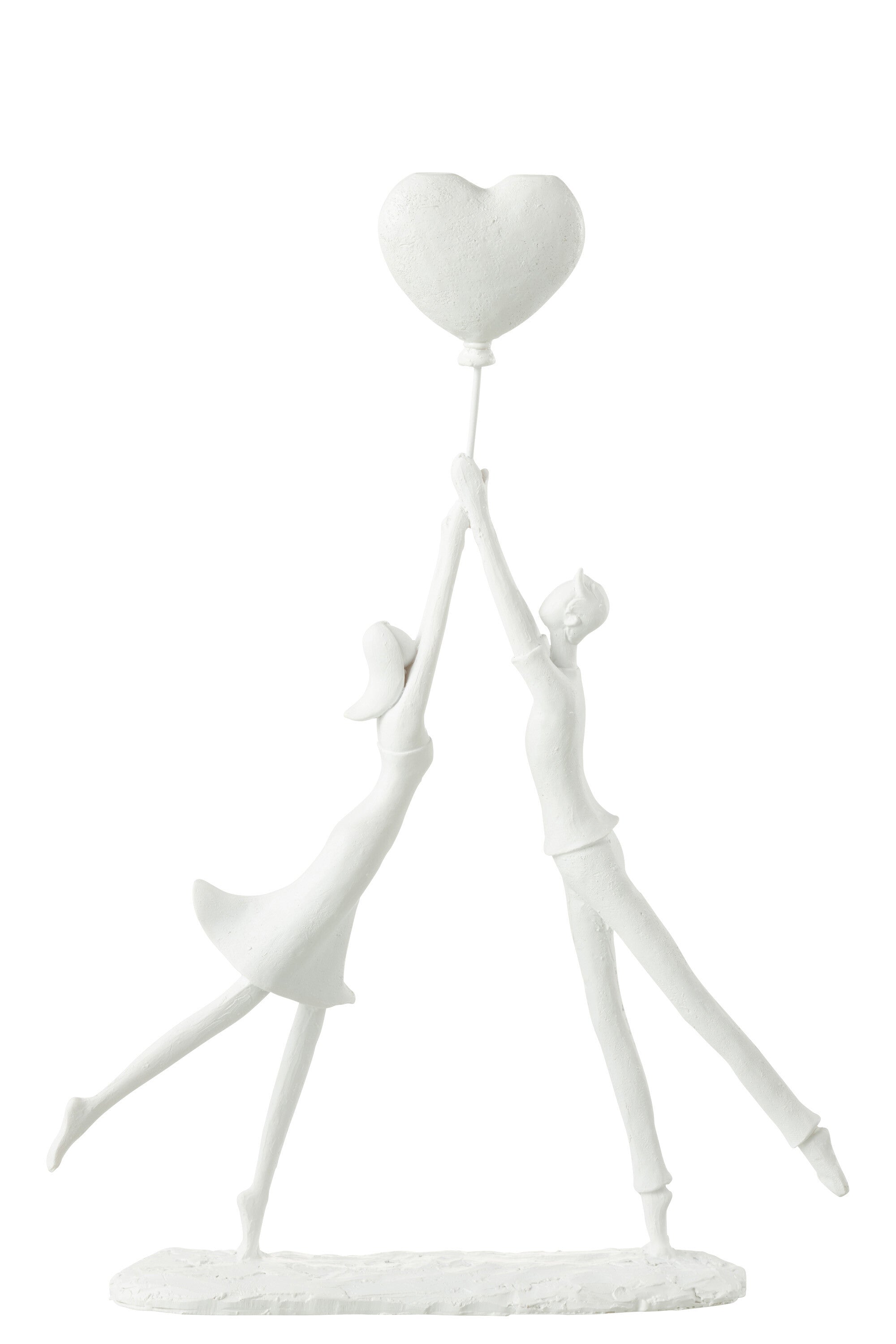 J-Line decoratie Koppel Staand Hart Ballon - polyresin - wit