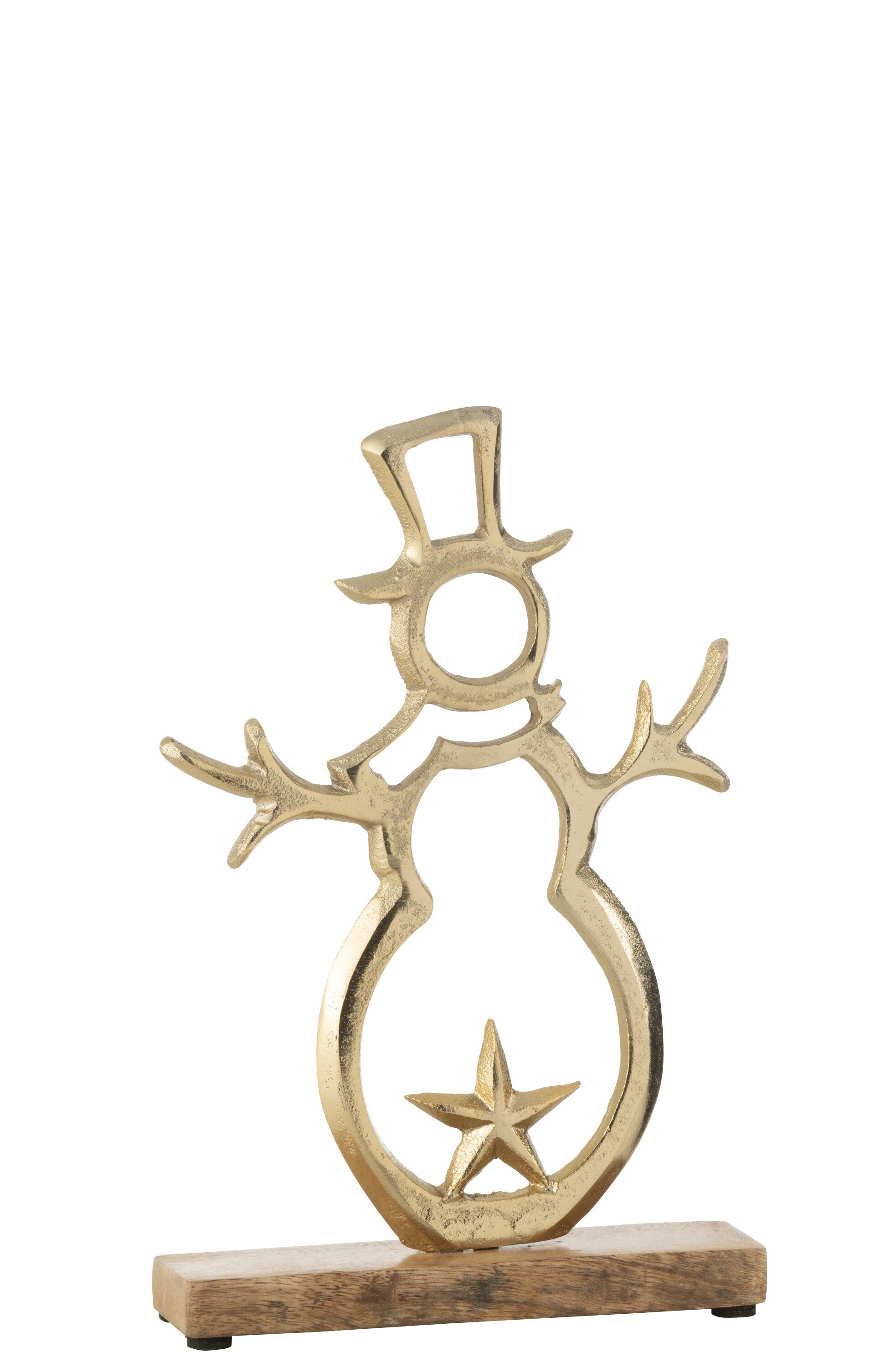 J-Line decoratie Sneeuwman Ster Op Voet - aluminium|hout -