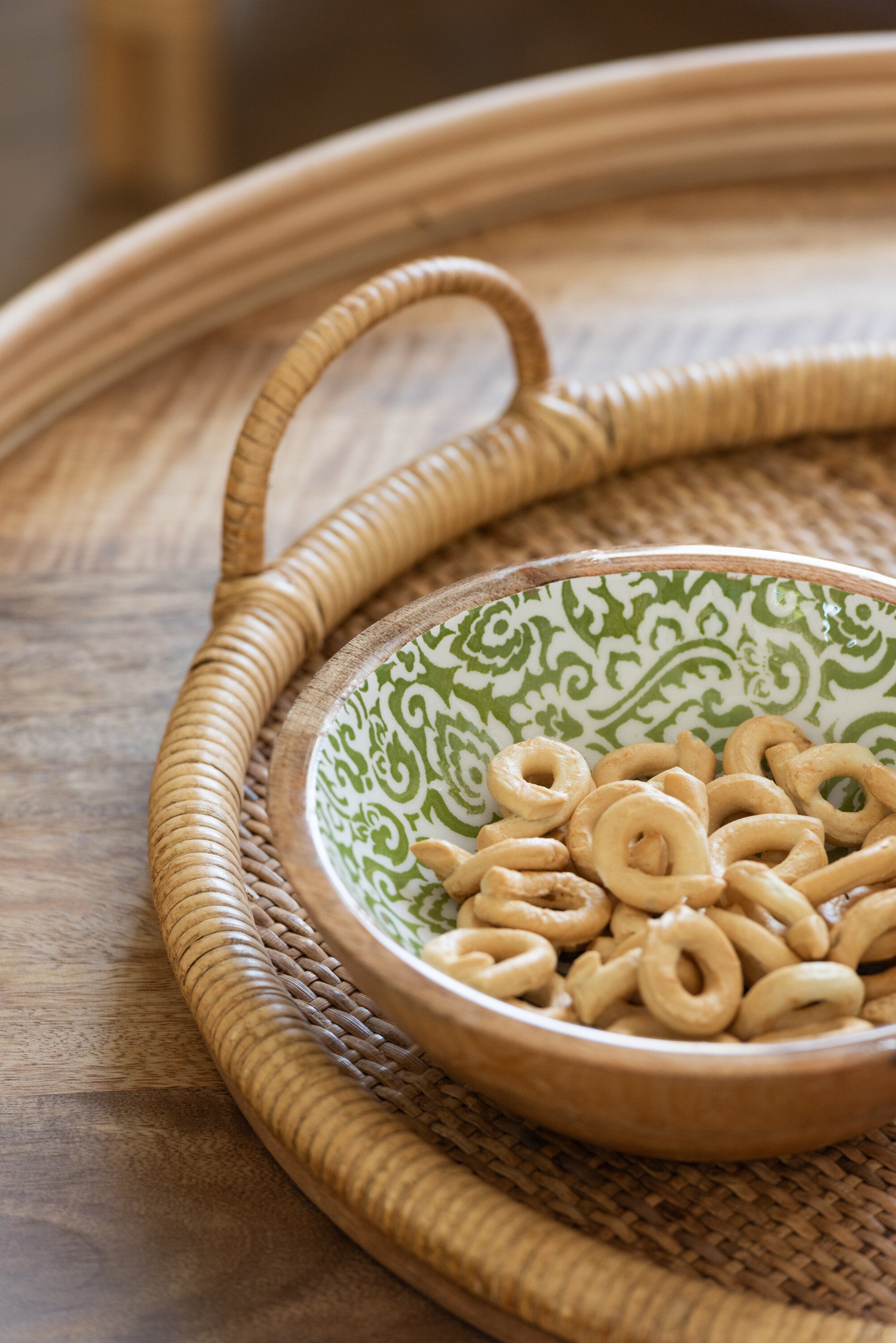 J-Line dienblad Ovaal - rotan|metaal - naturel - 3 stuks
