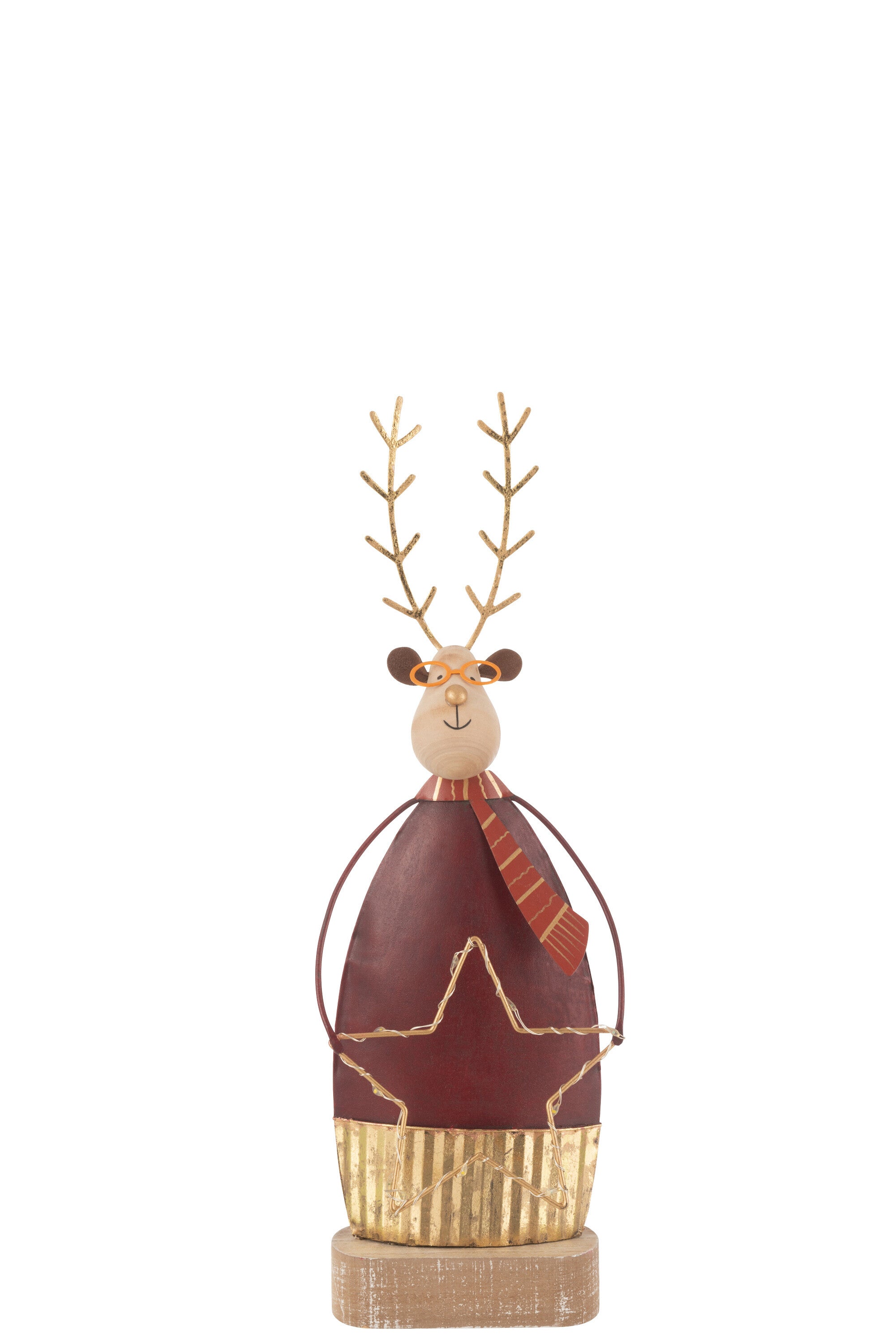 J-Line figuur Rendier + Sjaal|Bril - metaal - roest|goud - small - LED