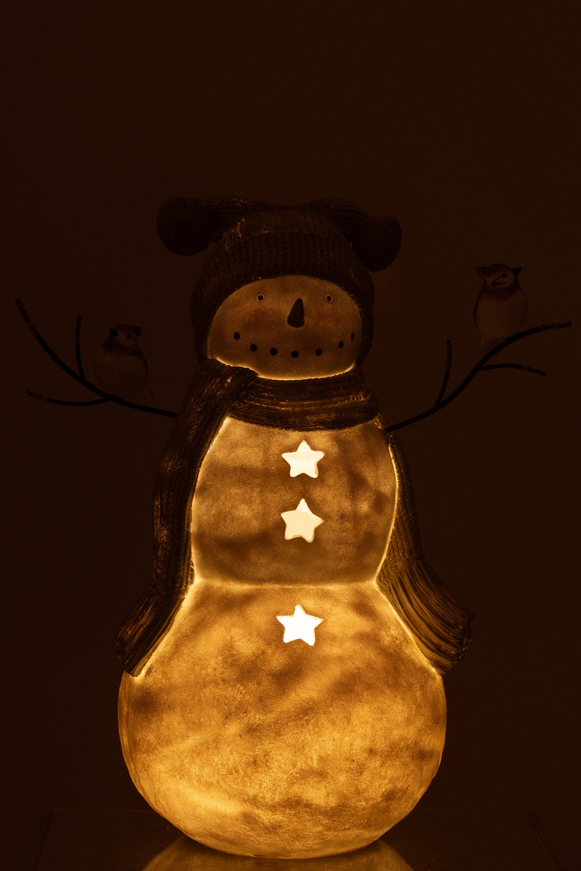 J-Line figuur sneeuwman Vogels - polyresin - rood|groen - large