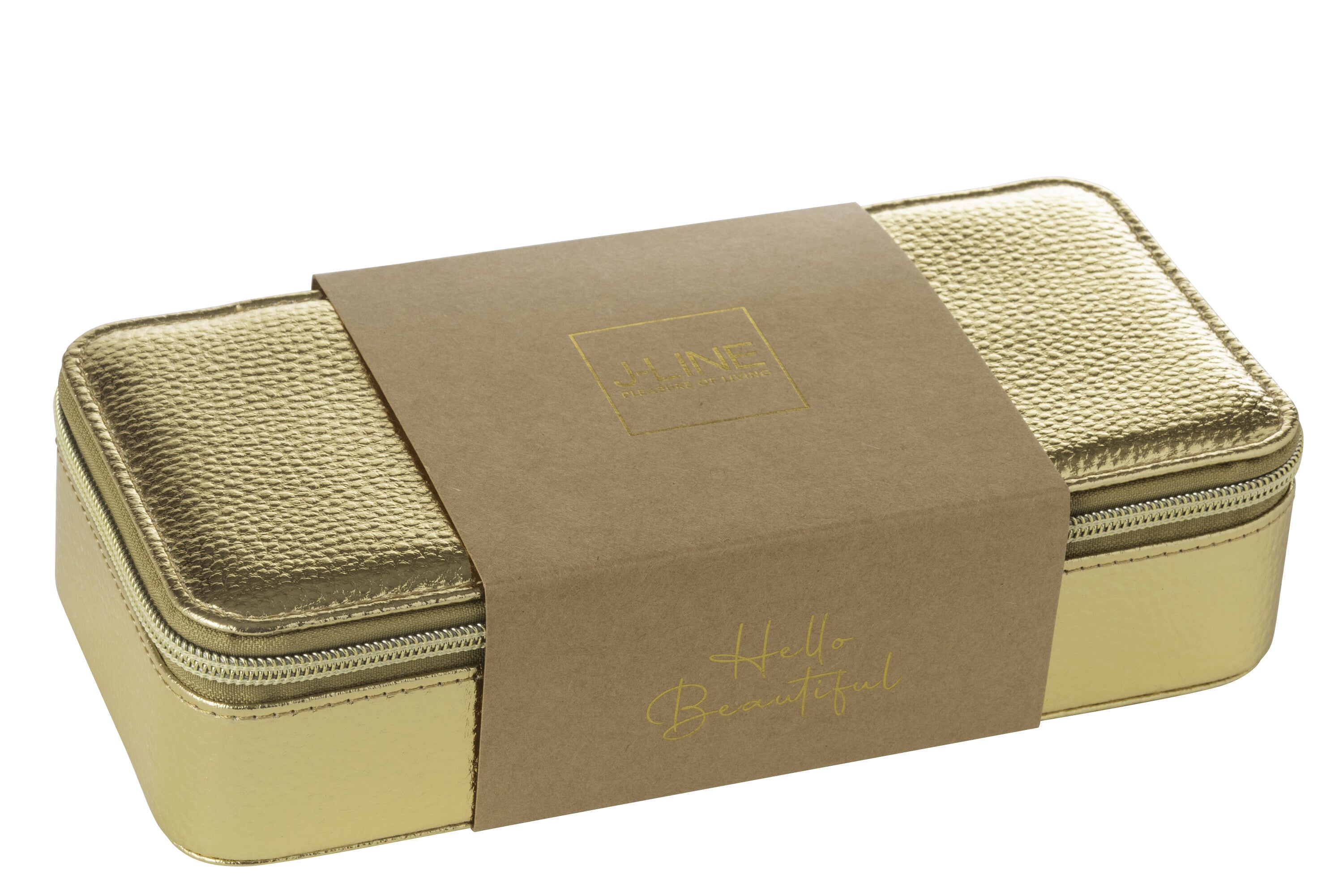 J-Line juwelendoos rechthoek + spiegel - kunstleder - goud