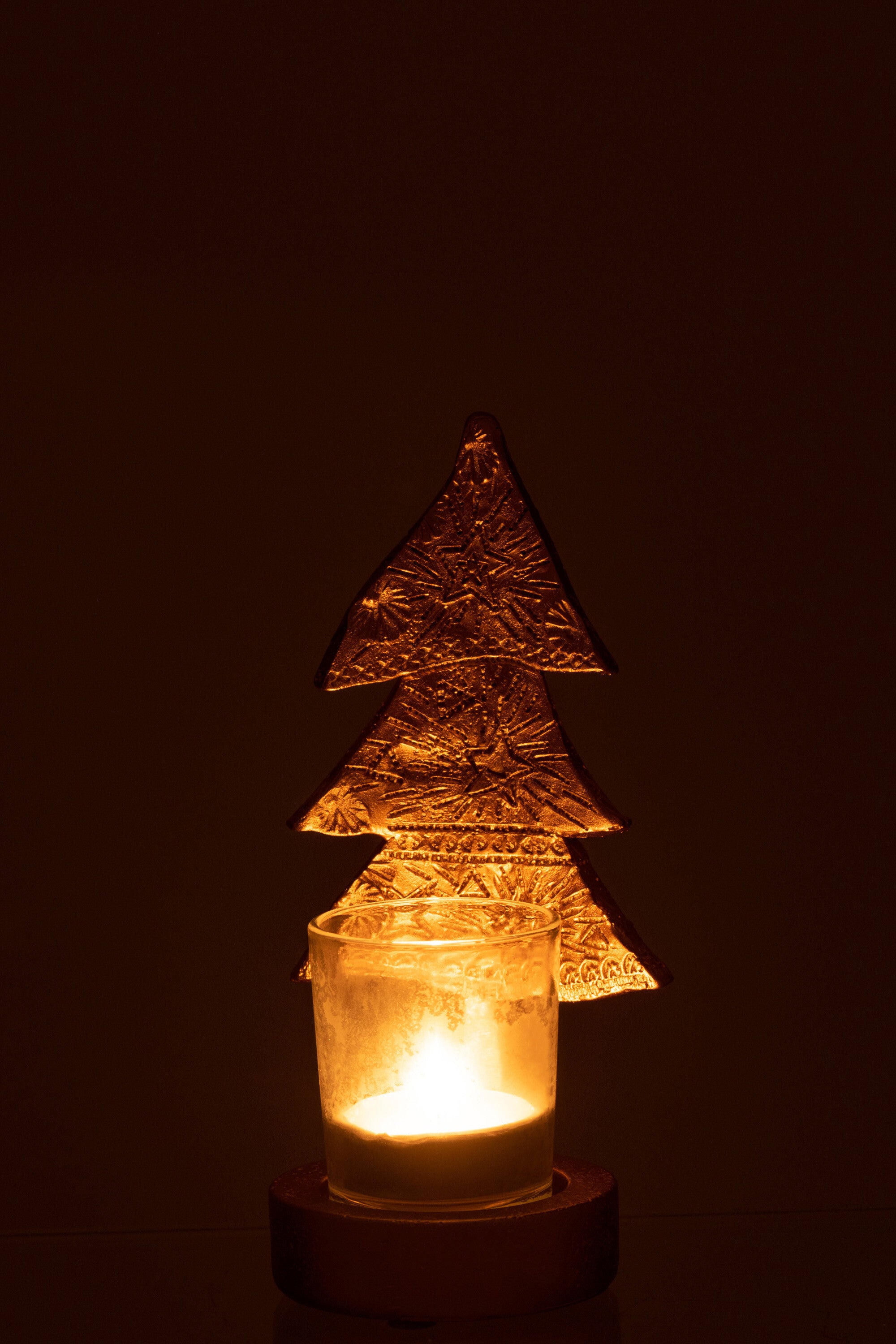 J-Line Kaarshouder kerstboom - theelichthouder - kunststof - goud