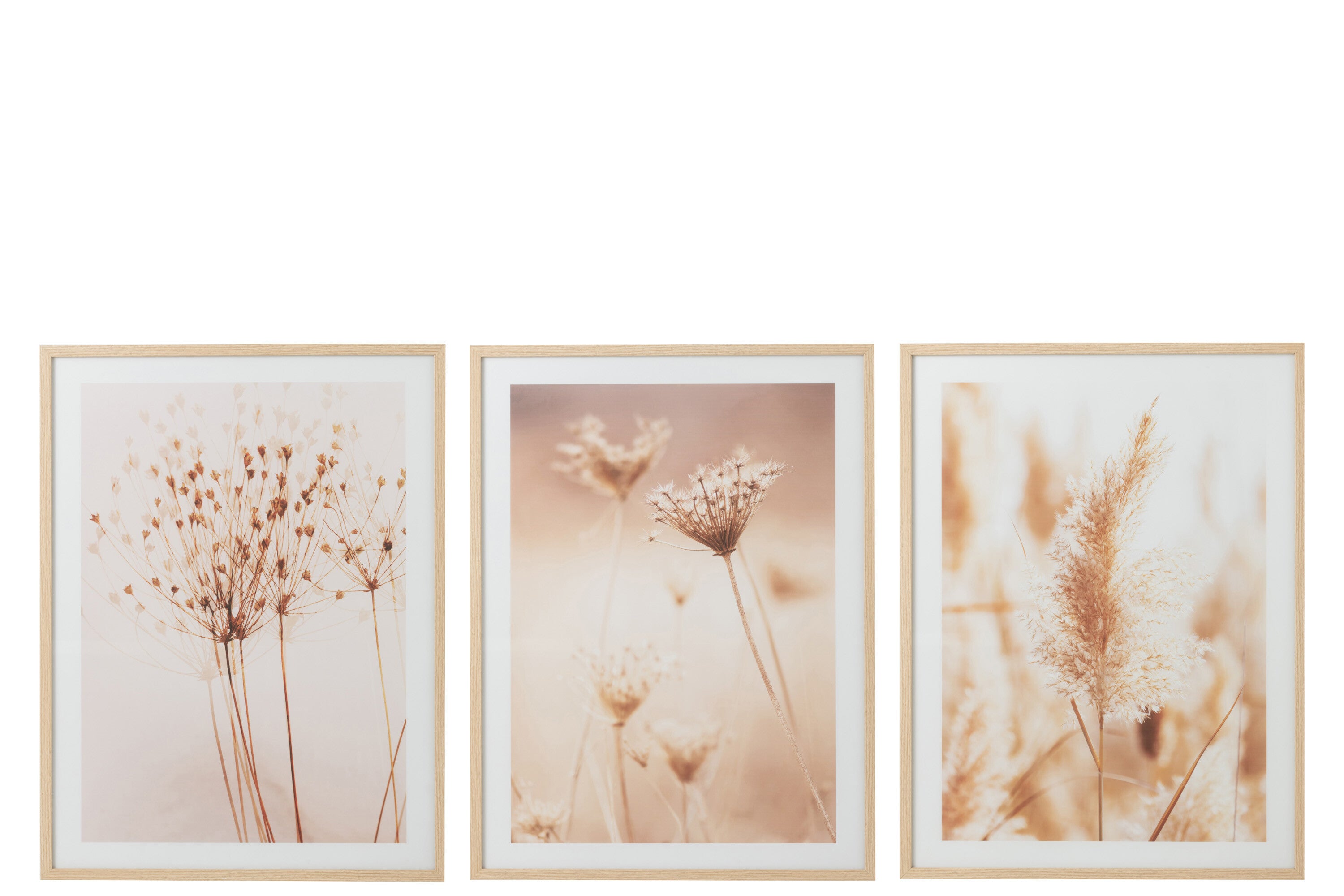 J-Line kader Bloemen Natuur - glas - beige|wit - 3 stuks