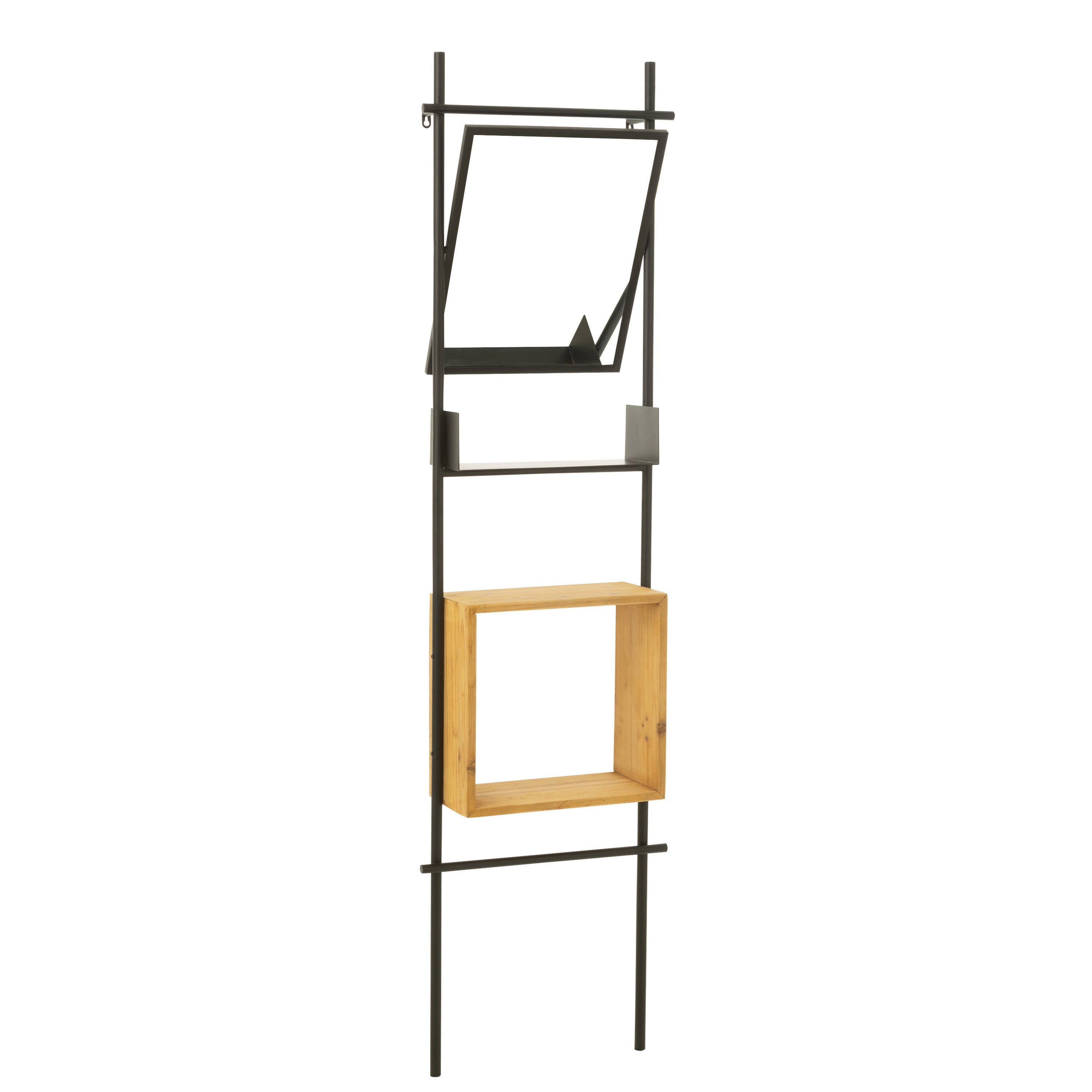 J-Line kast Muur Met Spiegel Tina - hout|ijzer - zwart|naturel