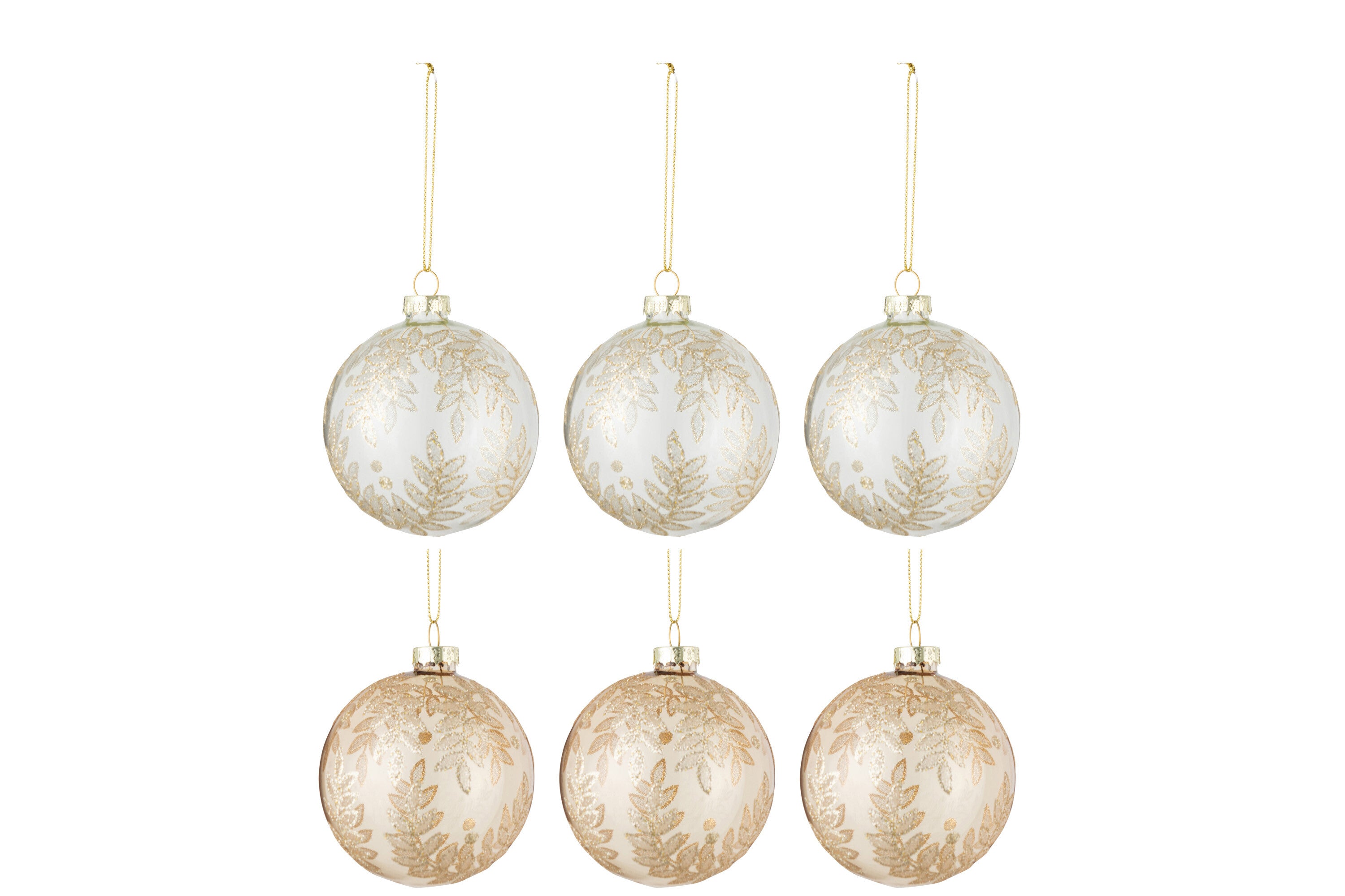 J-Line kerstbal Blaadjes - glas - transparant - beige|goud -