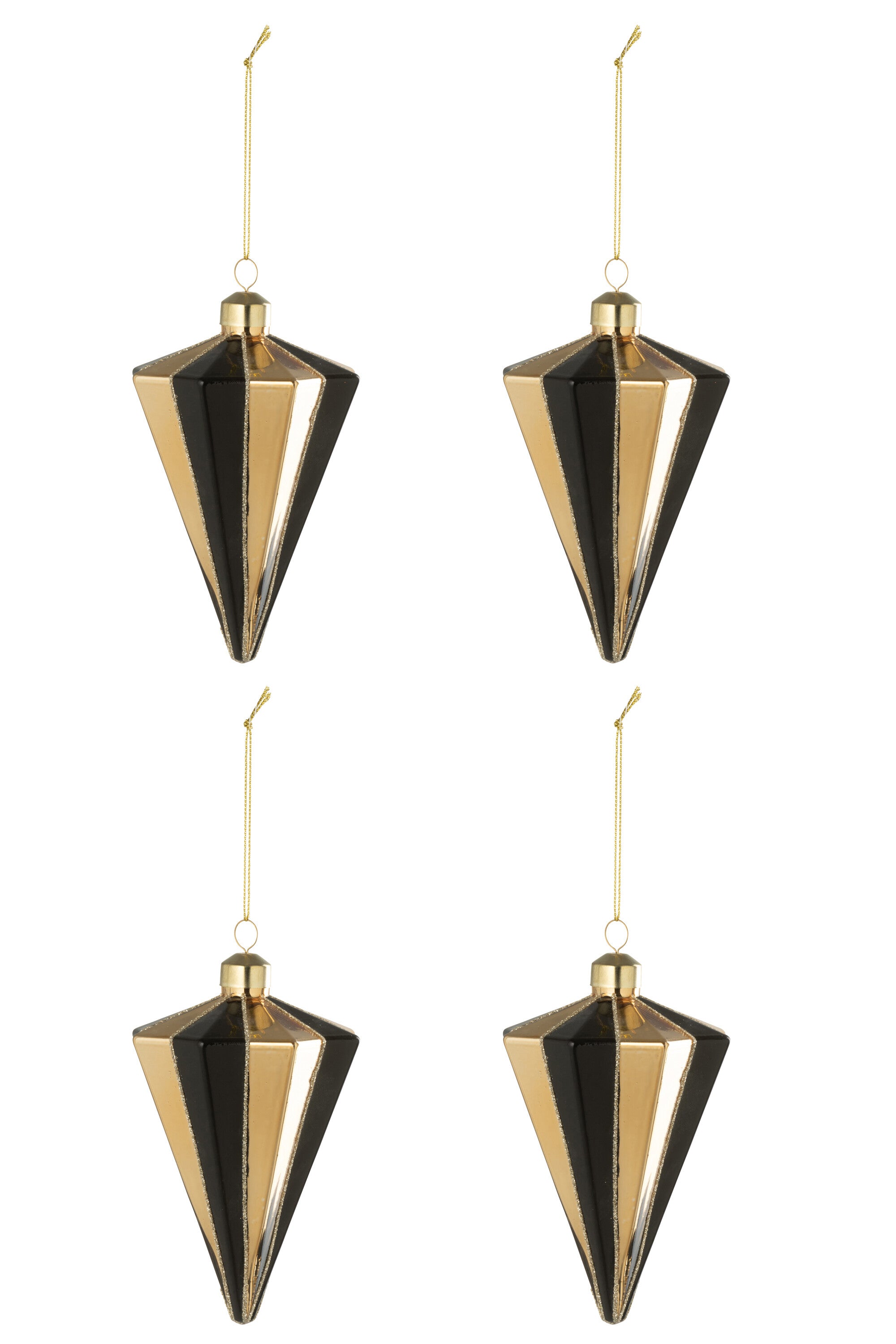 J-Line kerstbal Diamant Gestreept - glas - goud|zwart - doos