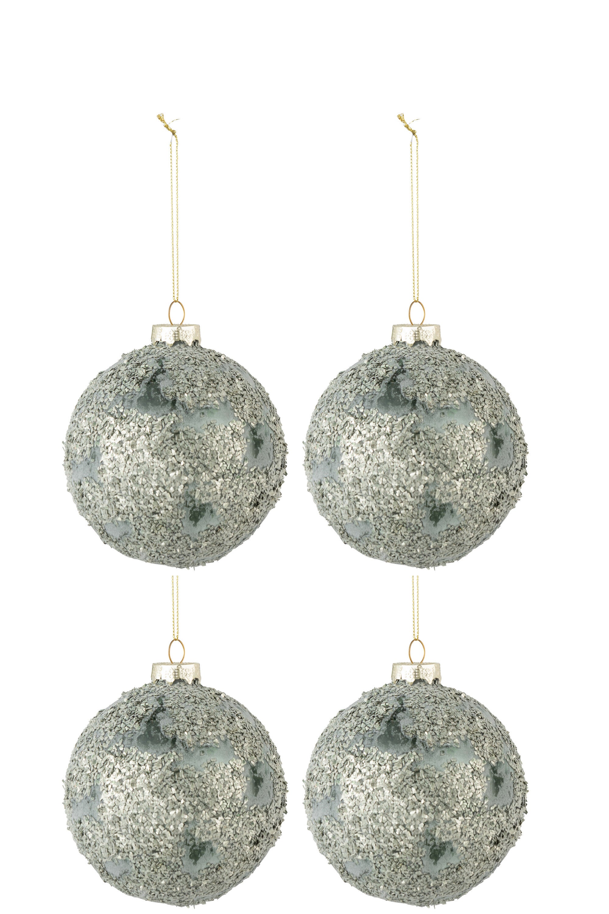 J-Line kerstbal Fijne Steentjes - glas - grijs|groen - mediu