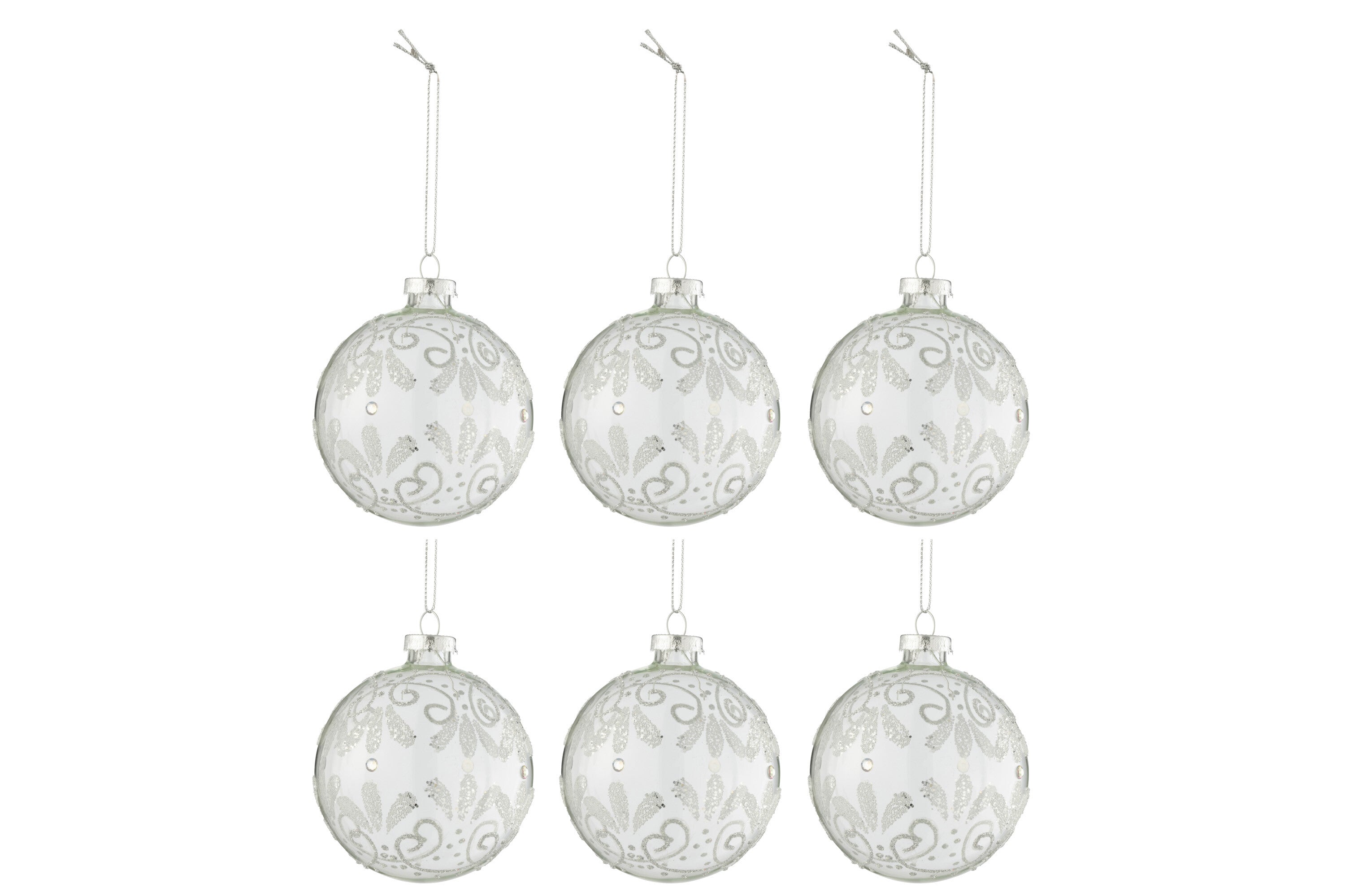 J-Line kerstbal Krullen Glitter - glas - transparant|zilver - small - doos van 6