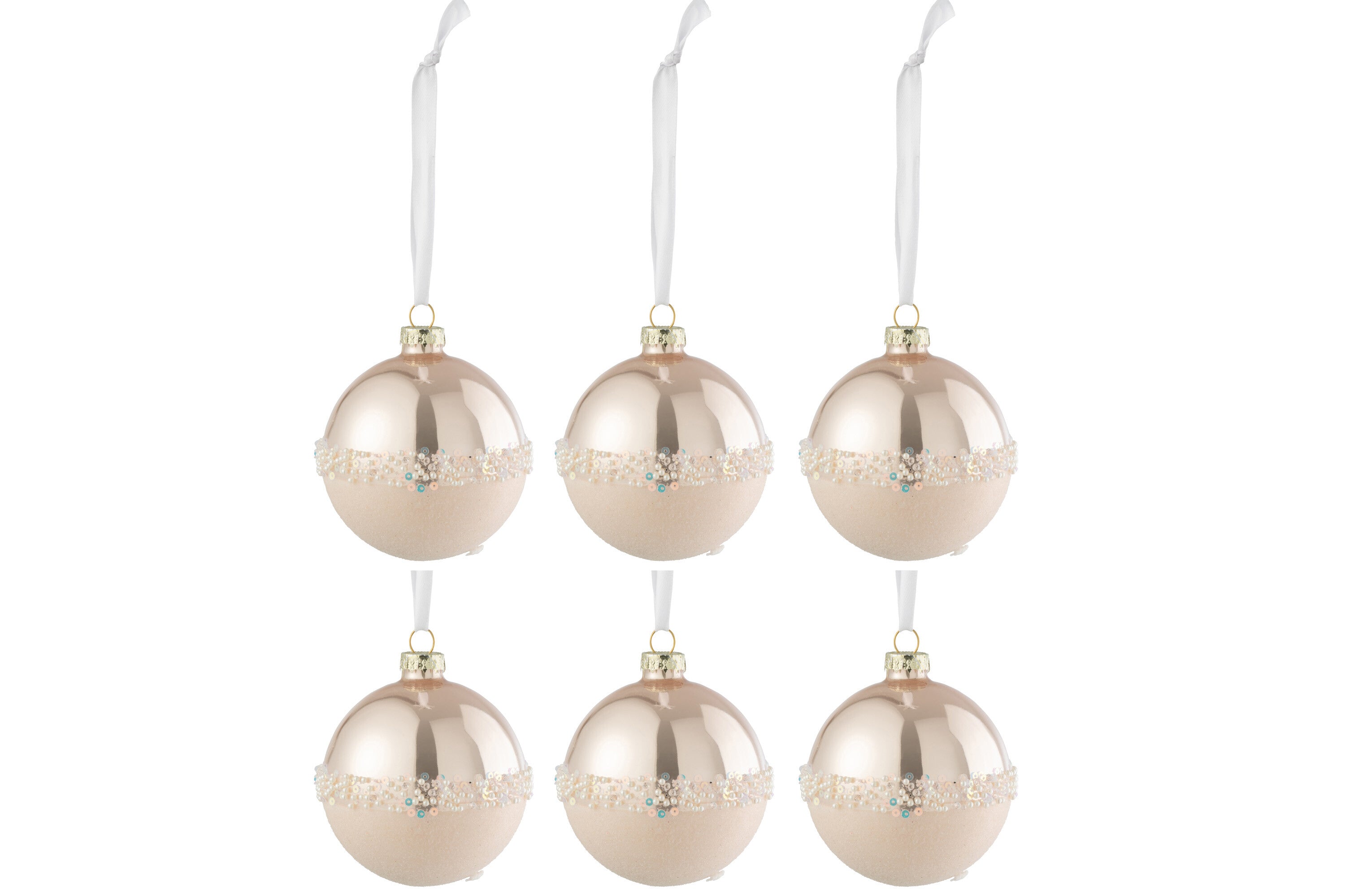 J-Line kerstbal Lijn Pailletten - glas - lichtroze - small - doos van 6